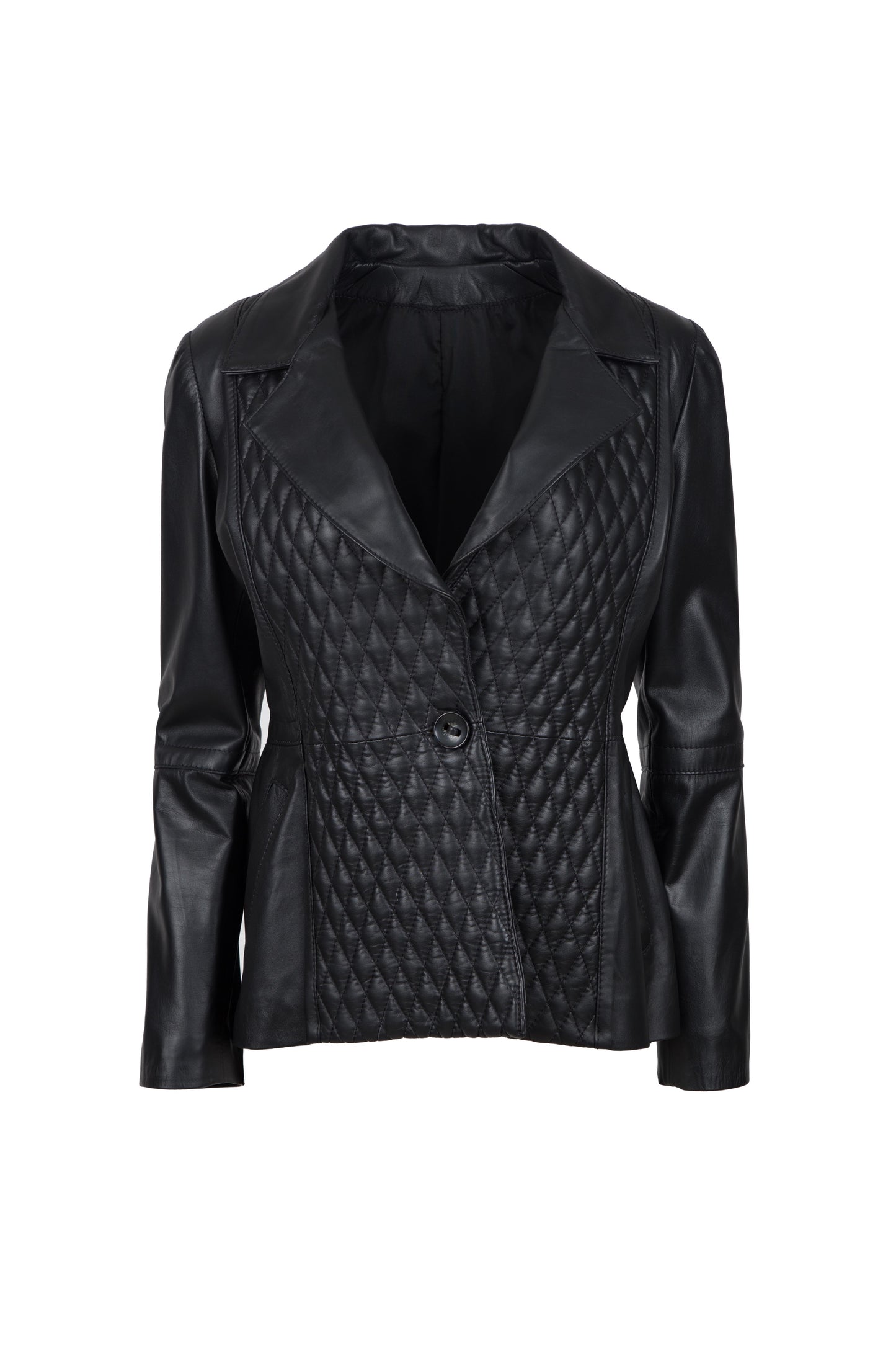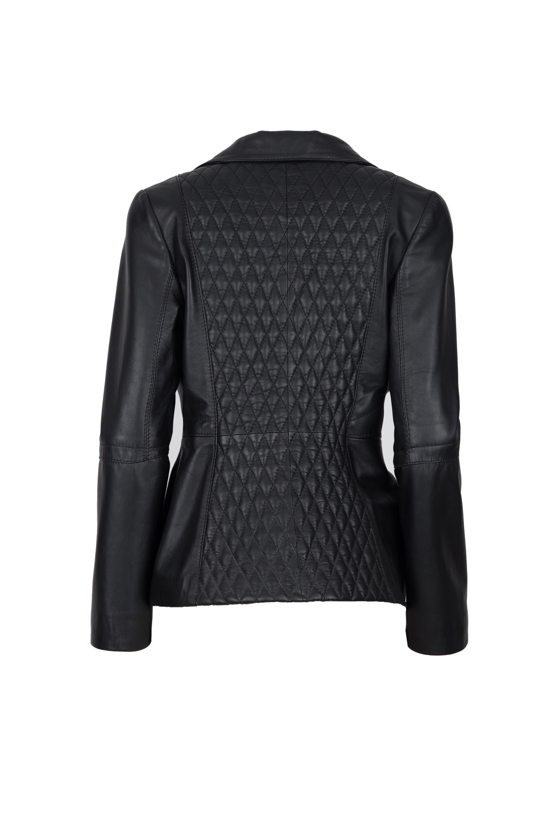 5504 - Γυναικείο Μαύρο Δερμάτινο Σακάκι με Καπιτονέ Λεπτομέρειες