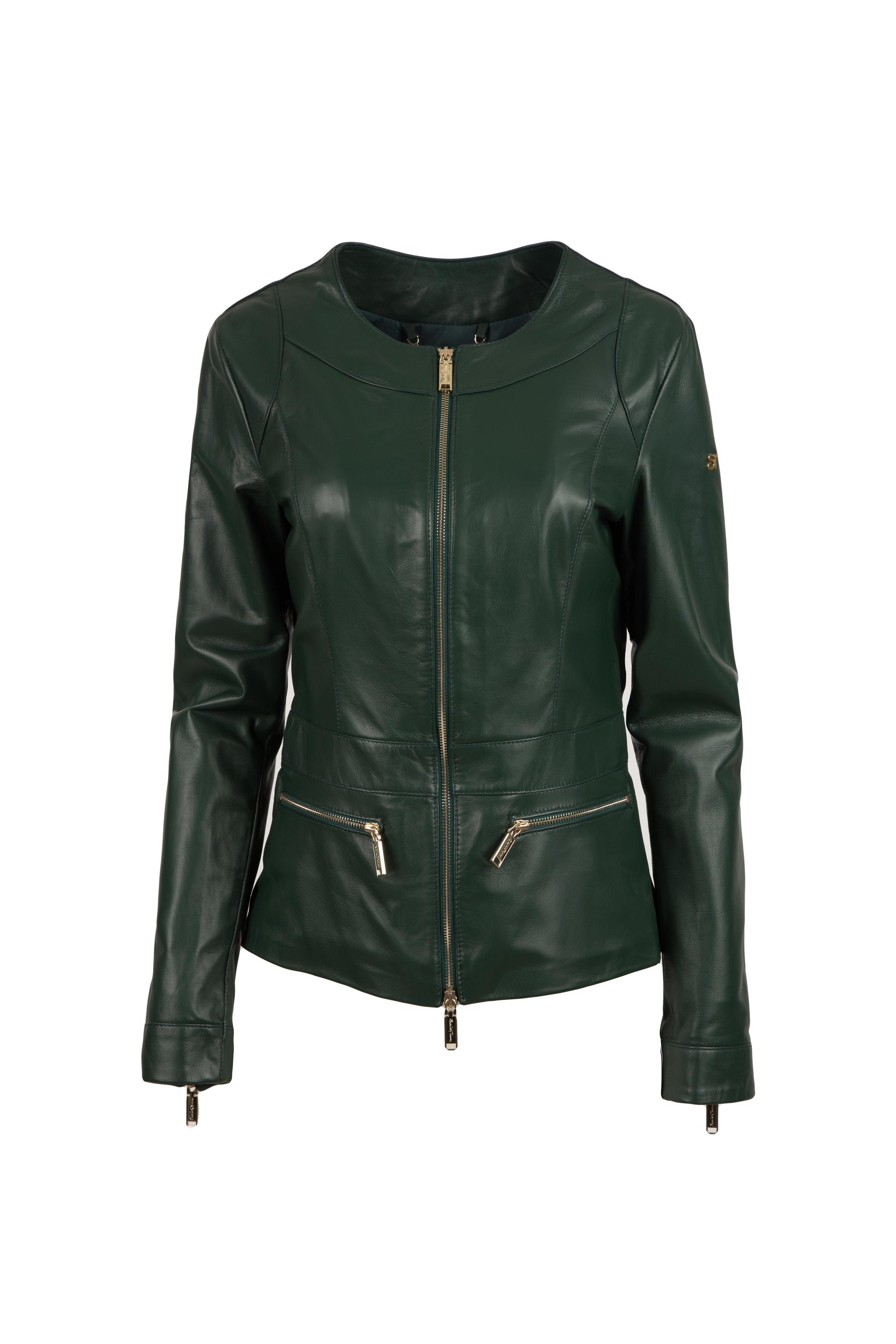 8332- Γυναικείο Πράσινο Δερμάτινο Μπουφάν Made in Italy