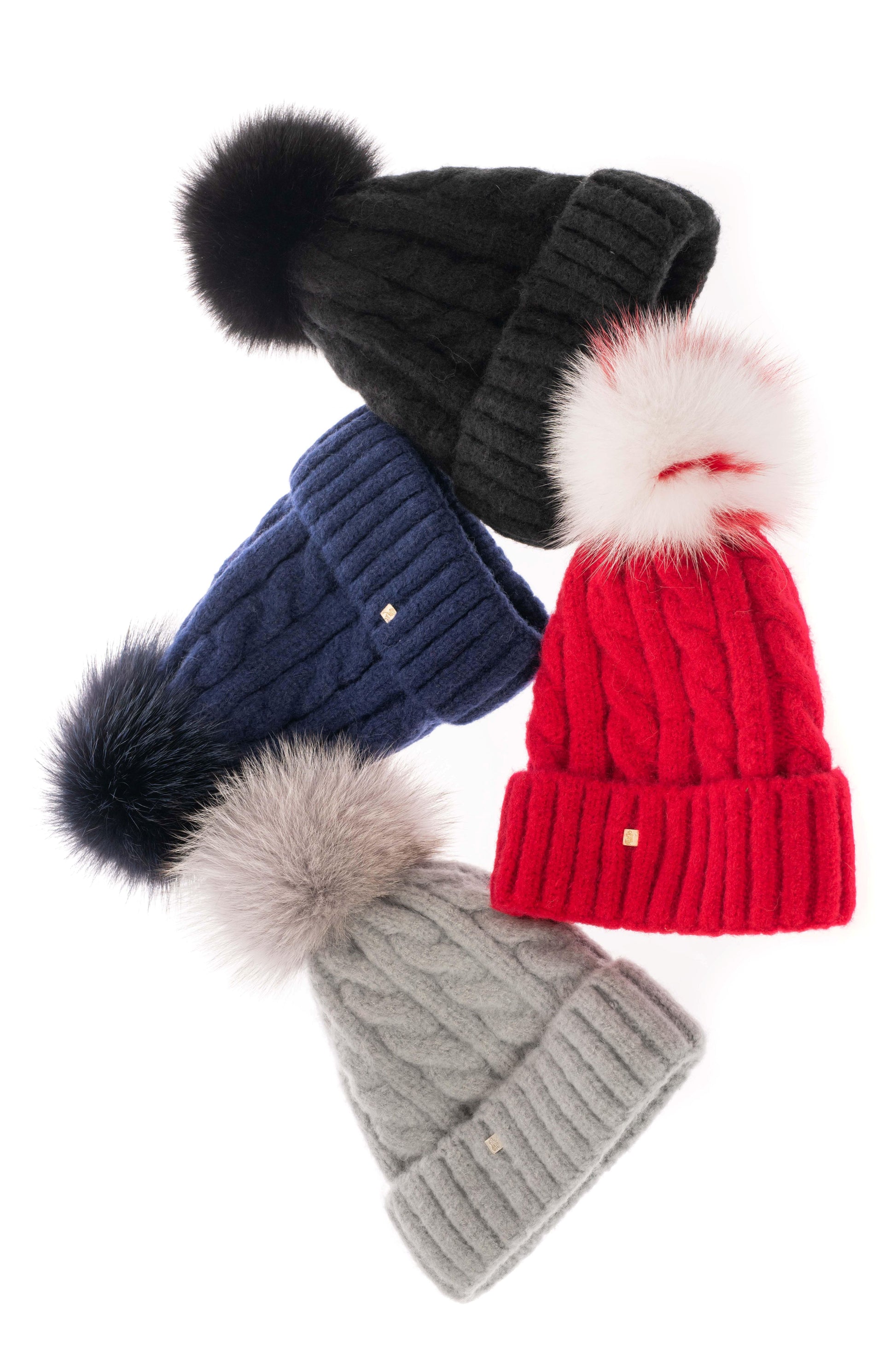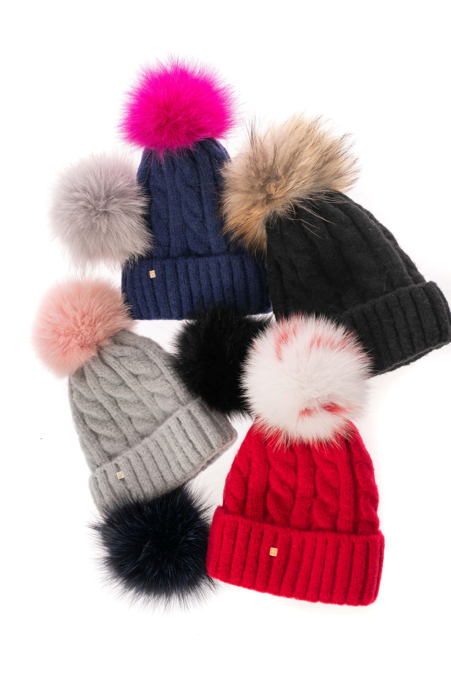 Πλεκτά Σκουφάκια με Αποσπώμενα Γούνινα Πομπομ σε Διάφορα Χρώματα