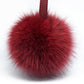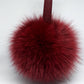 Burgundy Fox Fur Keychain Keyring pompom with genuine leather strap
