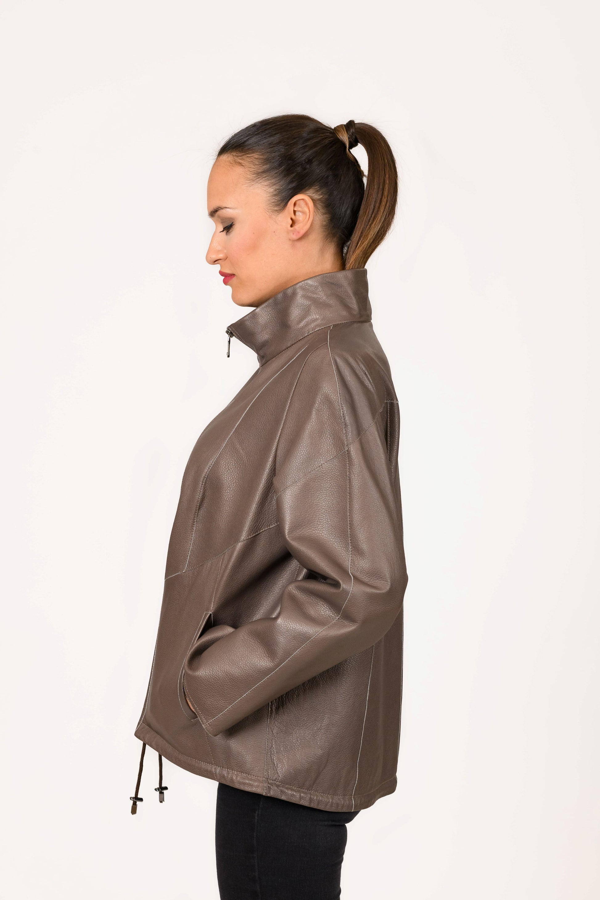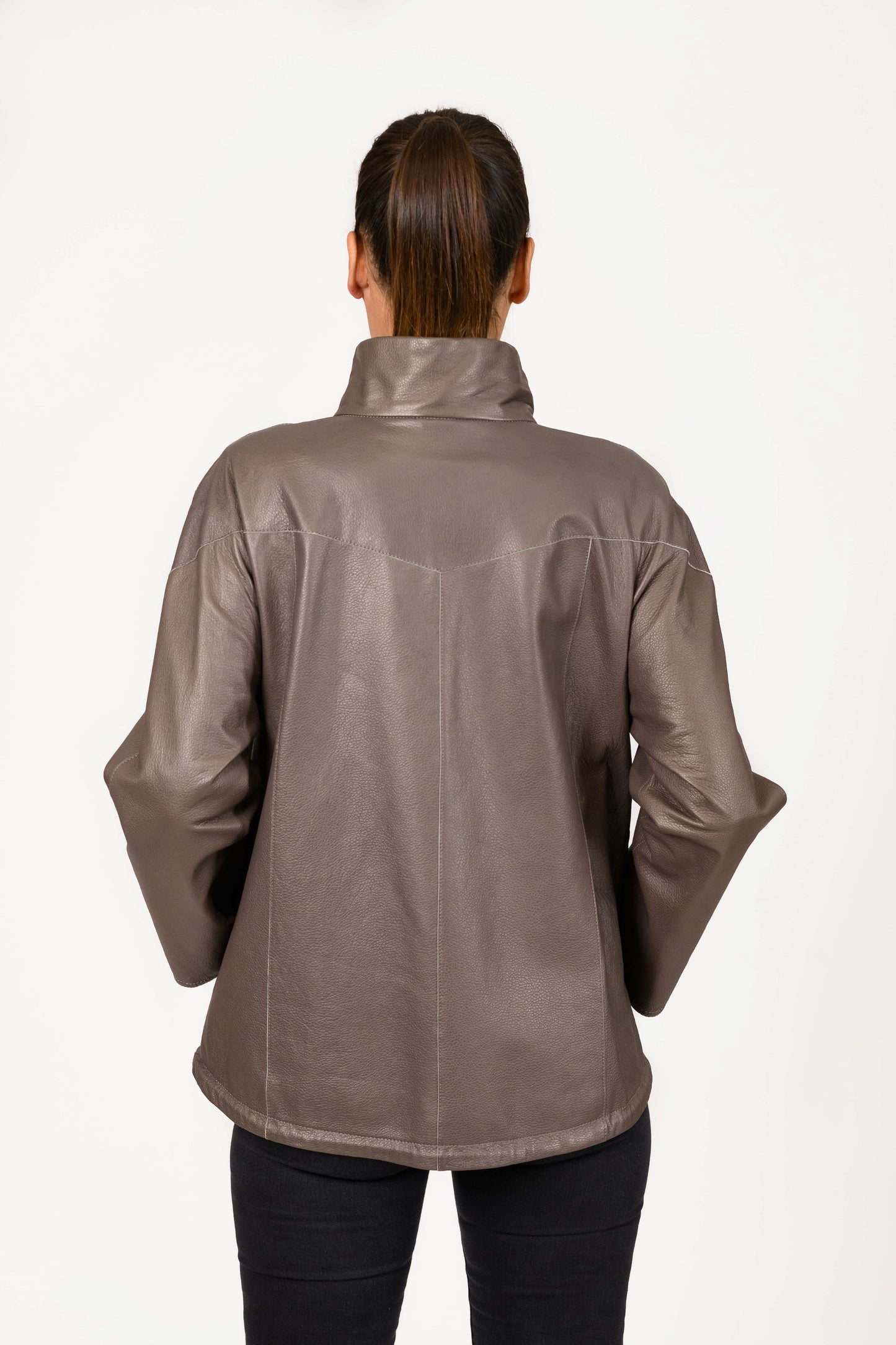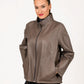 CALLISTO - Γκρι Δερμάτινη Ζακέτα με Άνετη Εφαρμογή