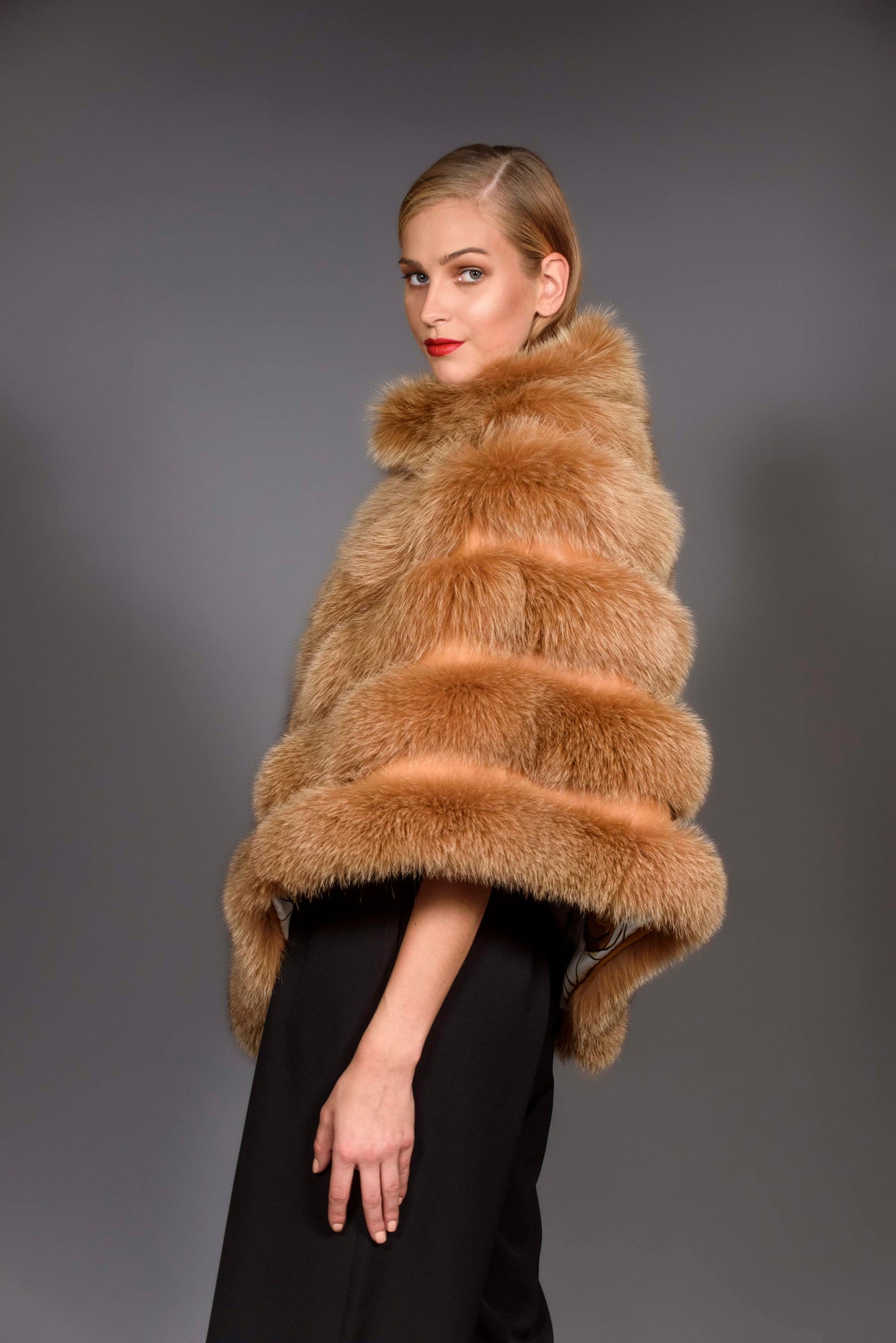 CHELSEA- Camel Fox fur cape