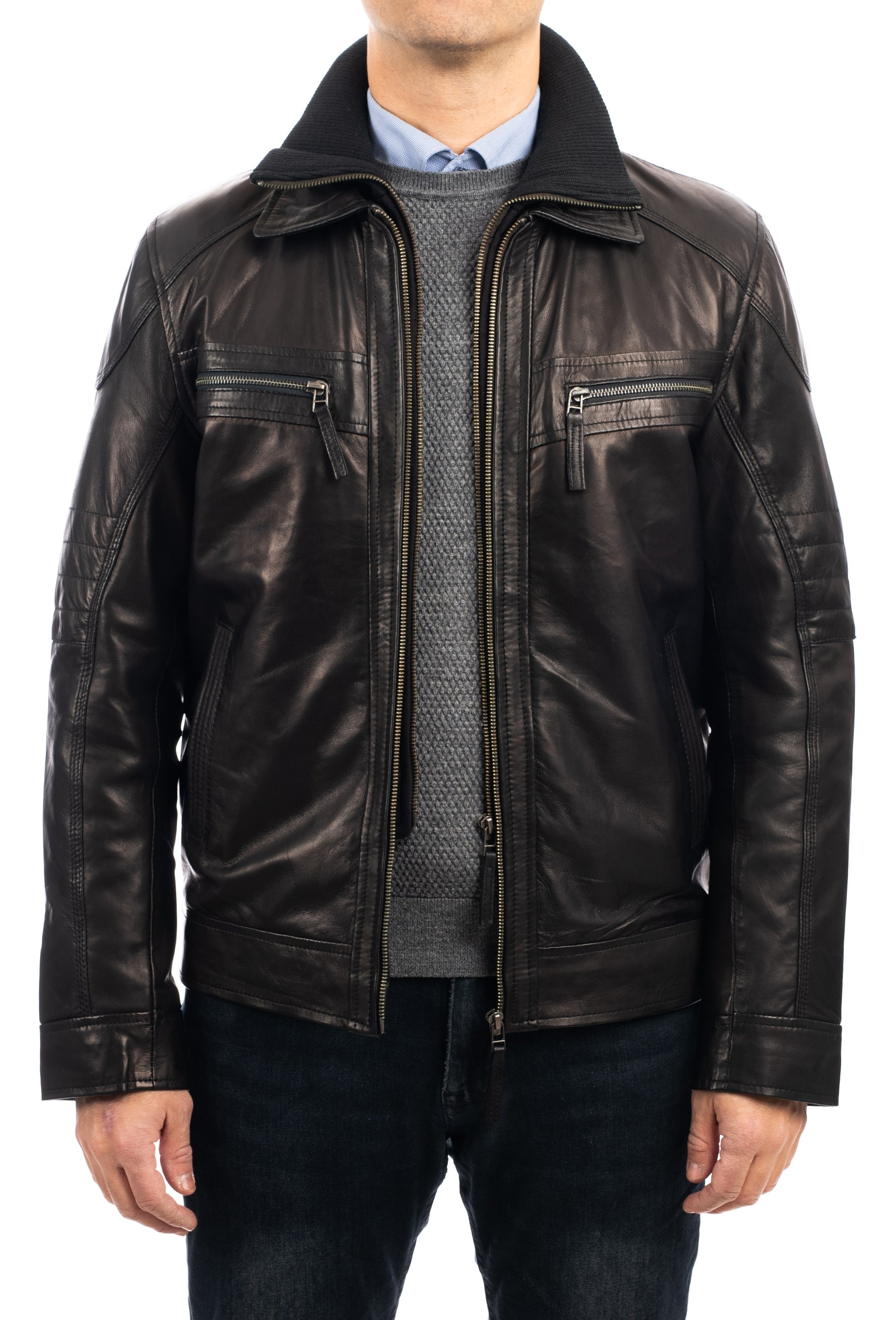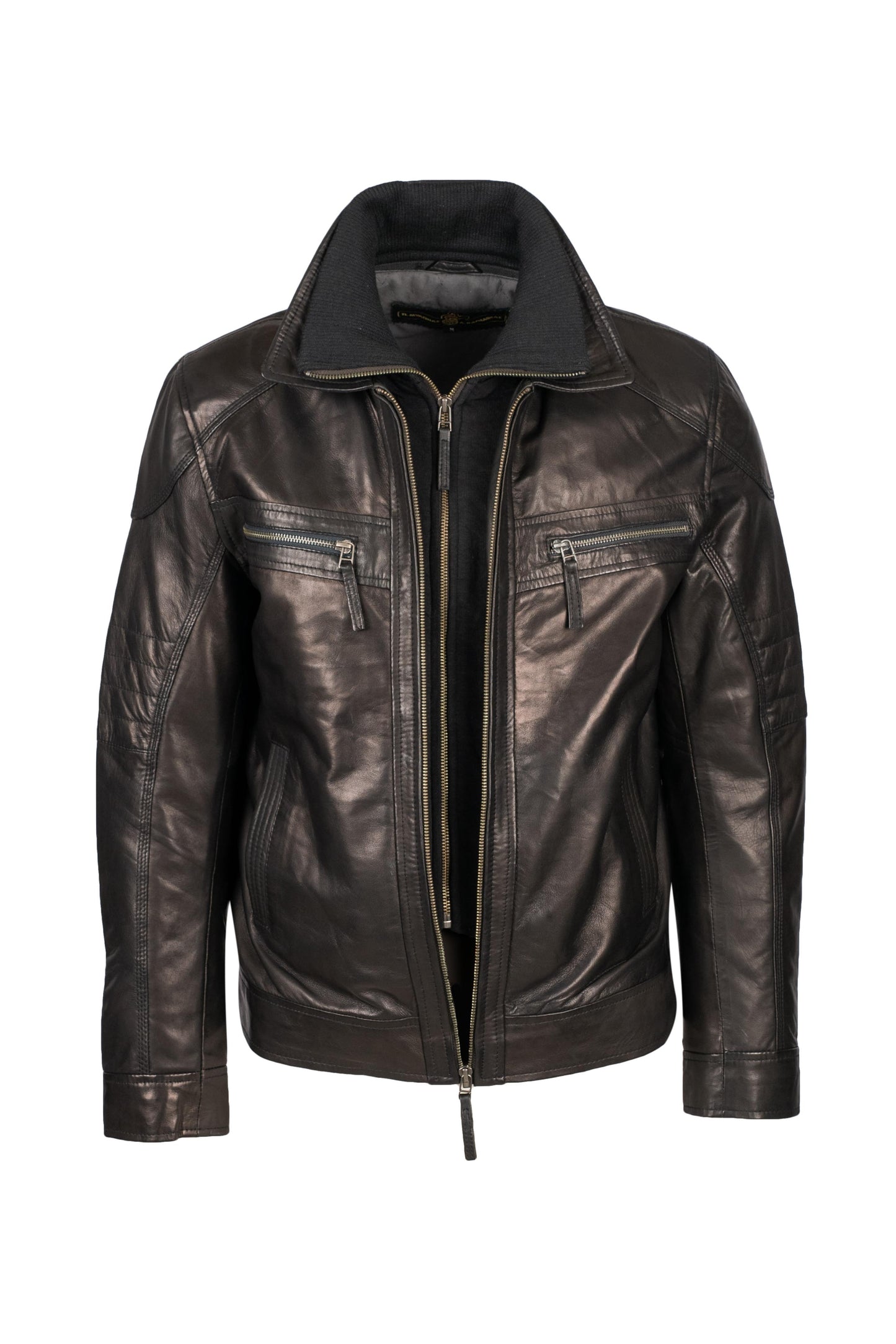 Ανδρικό κοντό δερμάτινο τζάκετ σε μαύρο χρώμα από δέρμα αρνιού κατεργασίας nappa