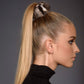 Two color (brown-beige) mink fur sewed in elastic ponytail holder.
