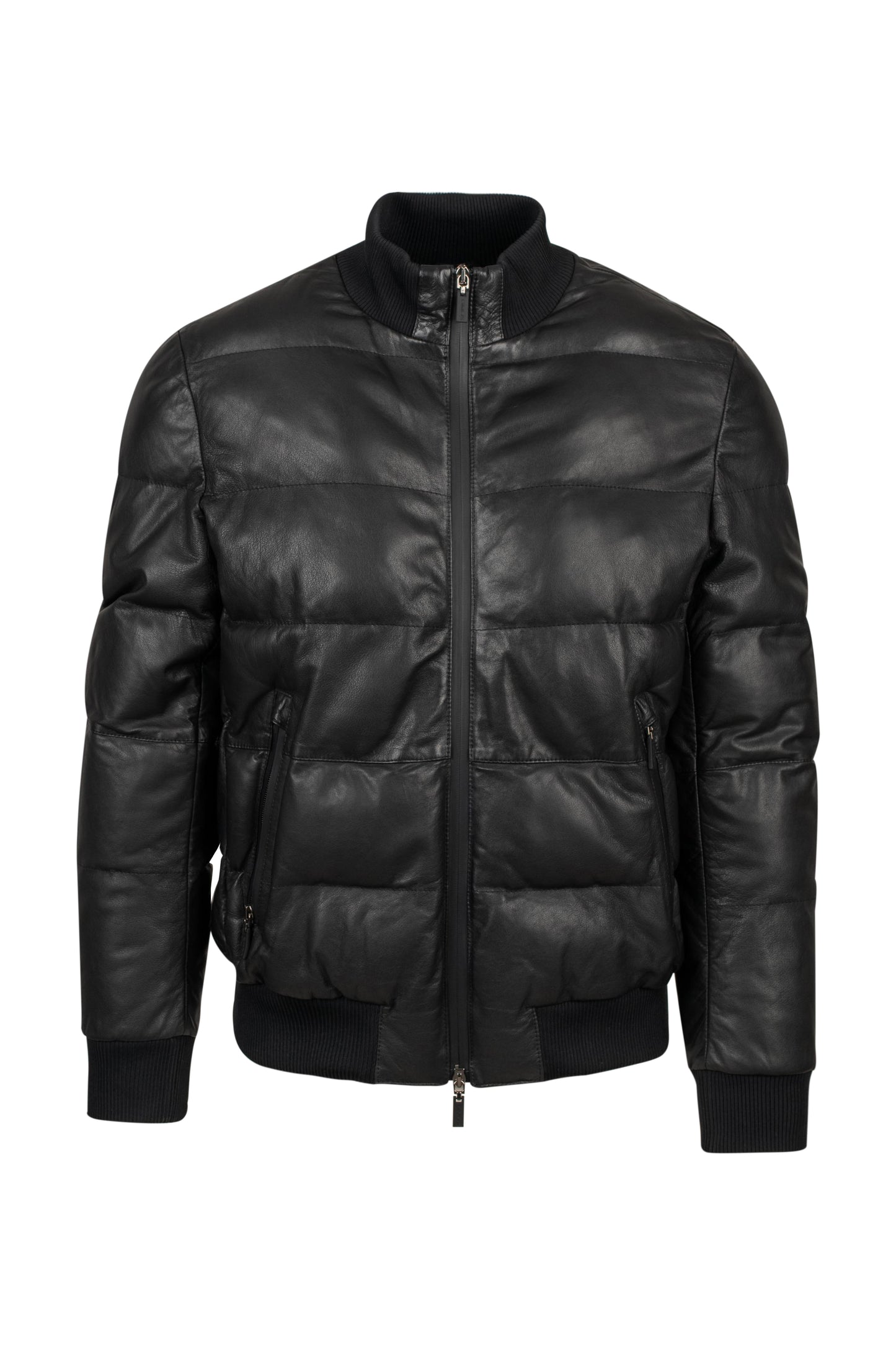 Μαύρο δερμάτινο μπουφάν με επένδυση , κατάλληλο για χαμηλές θερμοκρασίες απο την GIMOS ITALIA