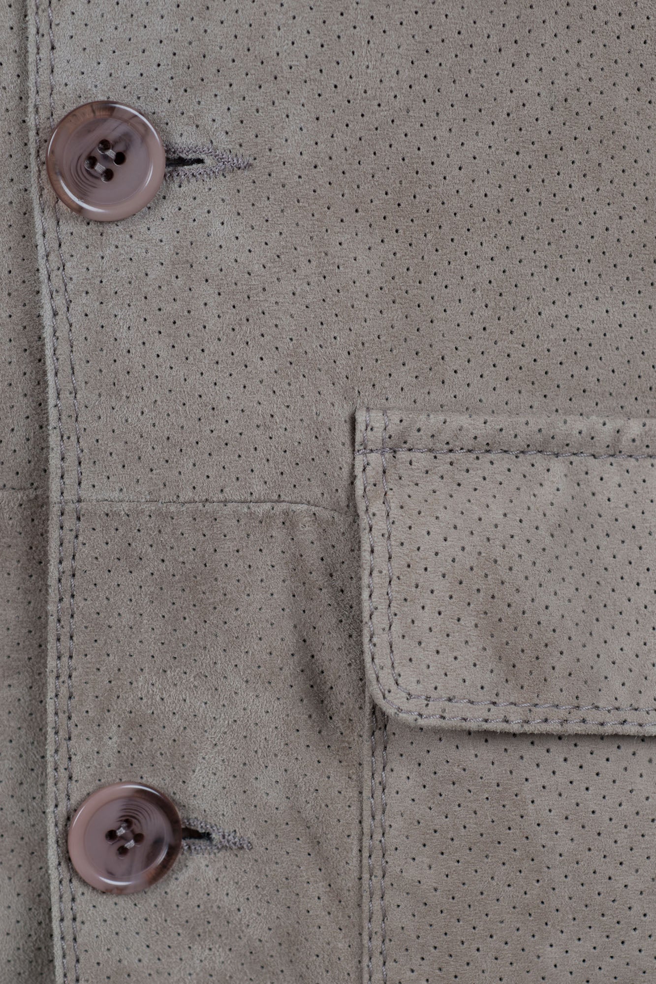 Γκρι ανοιξιάτικο Polo style μπουφάν με τριπητό καστόρ και ριπ πλεκτό λεπτομέρειες από την GIMOS ITALIA.