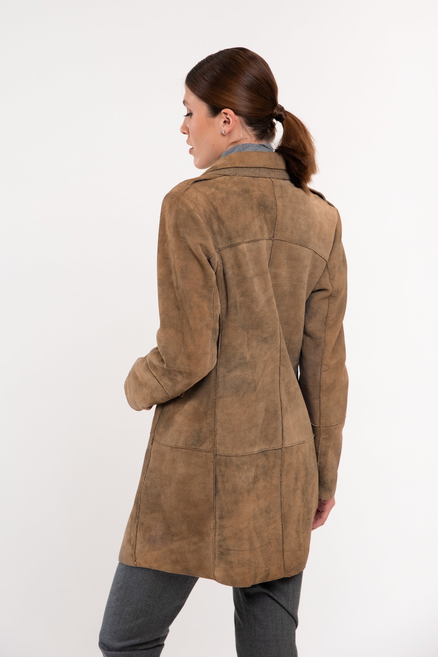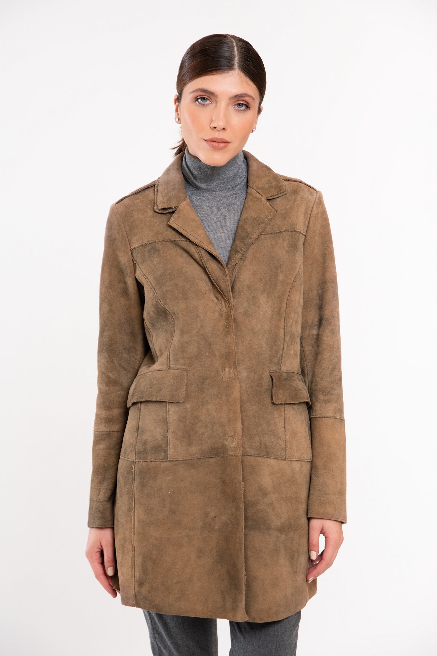 GIMOS – Γυναικείο Μακρύ Τζάκετ από Πετροπλυμένο Σουέτ Δέρμα