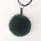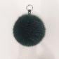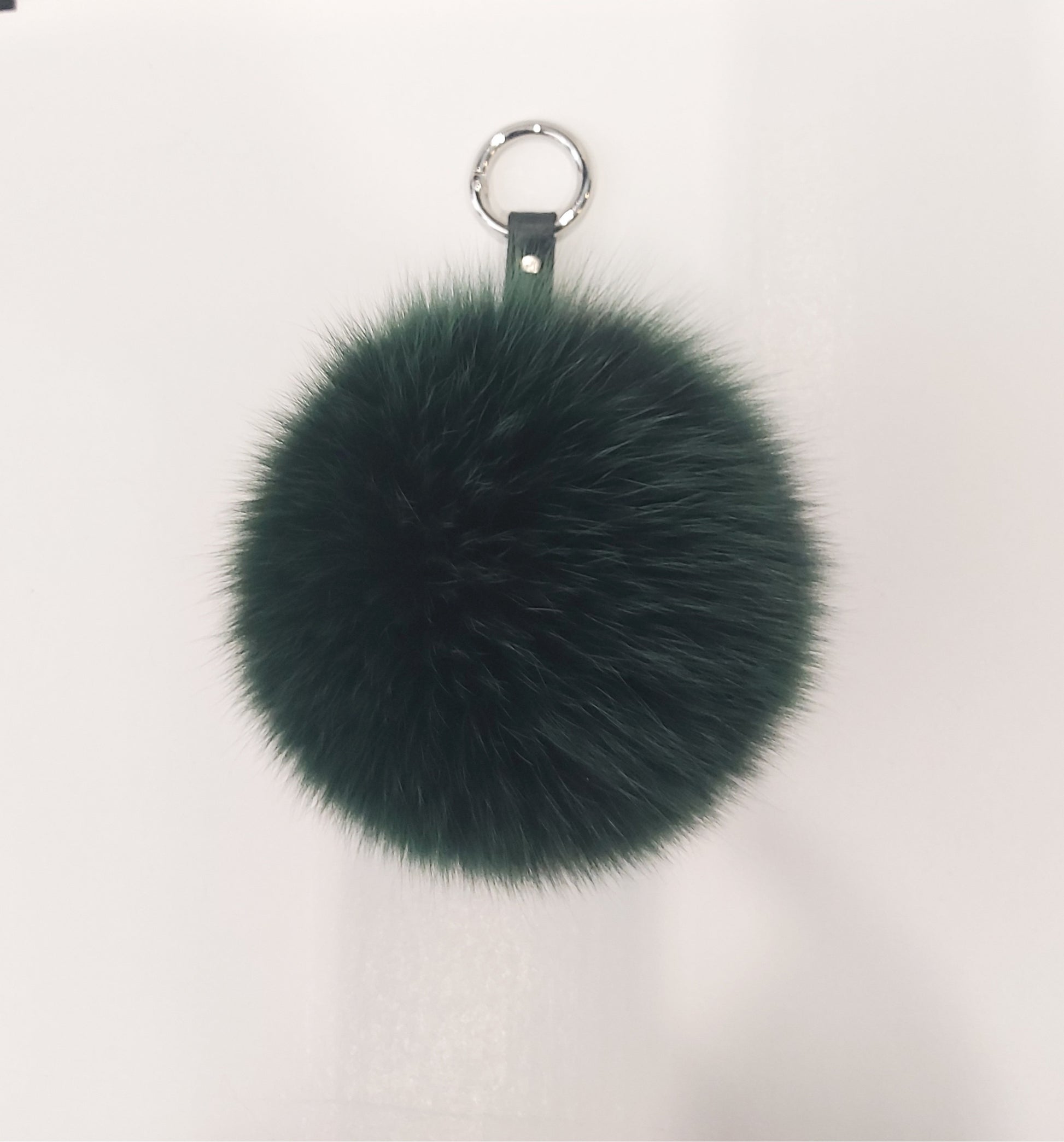 GREEN POMPOM FUR keychain with genuine leather strap, Real fox fur pompom charm with round ring-clasp.