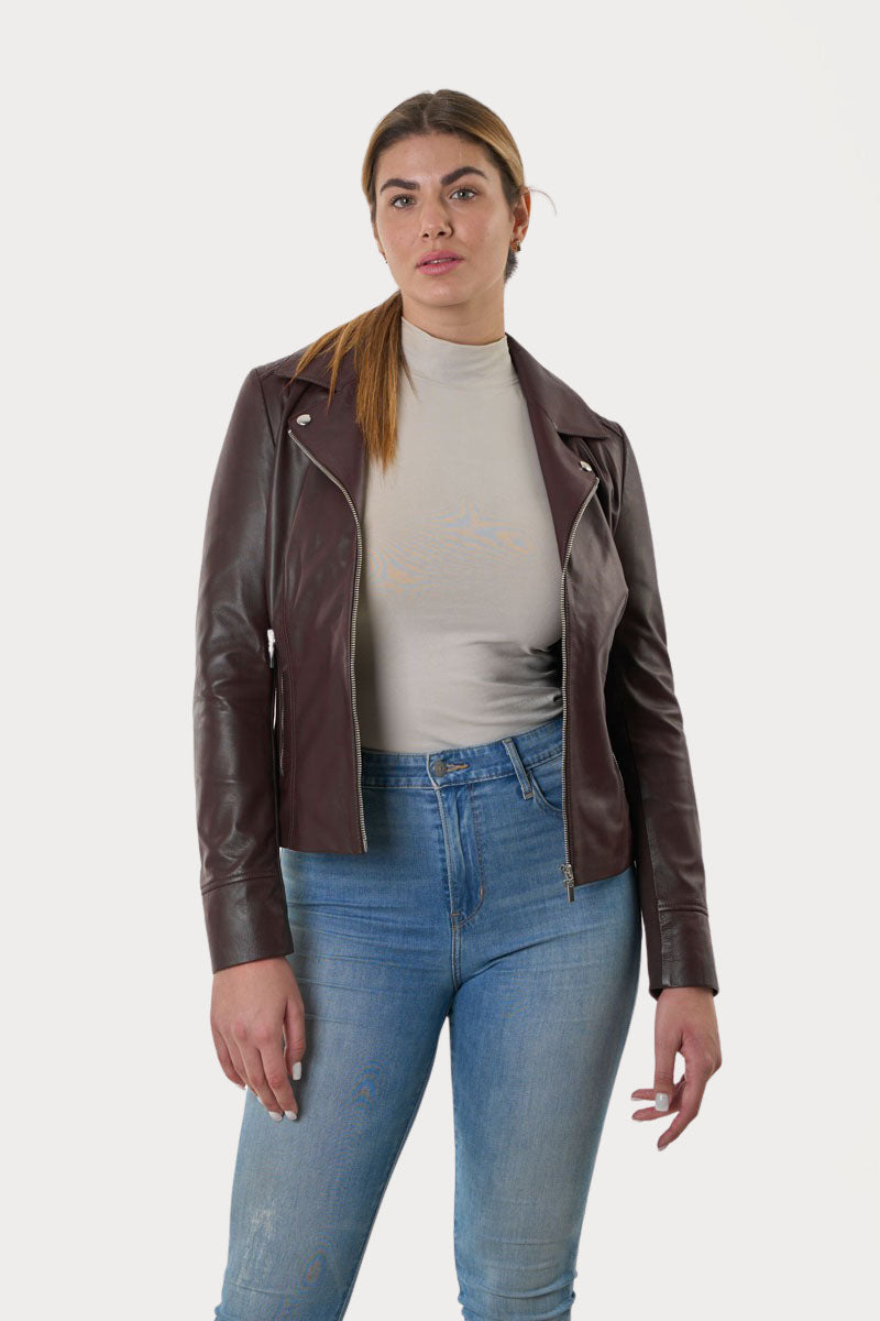 KENDAL – Γυναικείο Δερμάτινο Biker Μπουφάν Σε Μπορντό Χρώμα