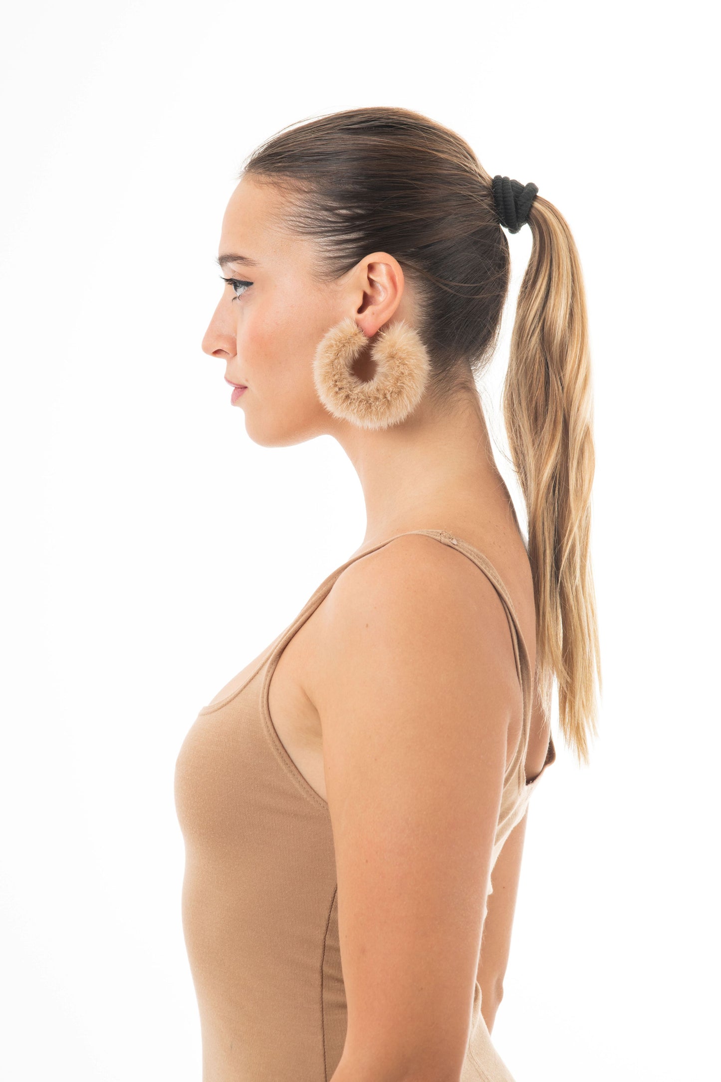 Σκουλαρίκια κρίκοι με γούνα μινκ σε ανοιχτό καμηλό – Κρίκοι τυλιγμένοι με γούνα μινκ