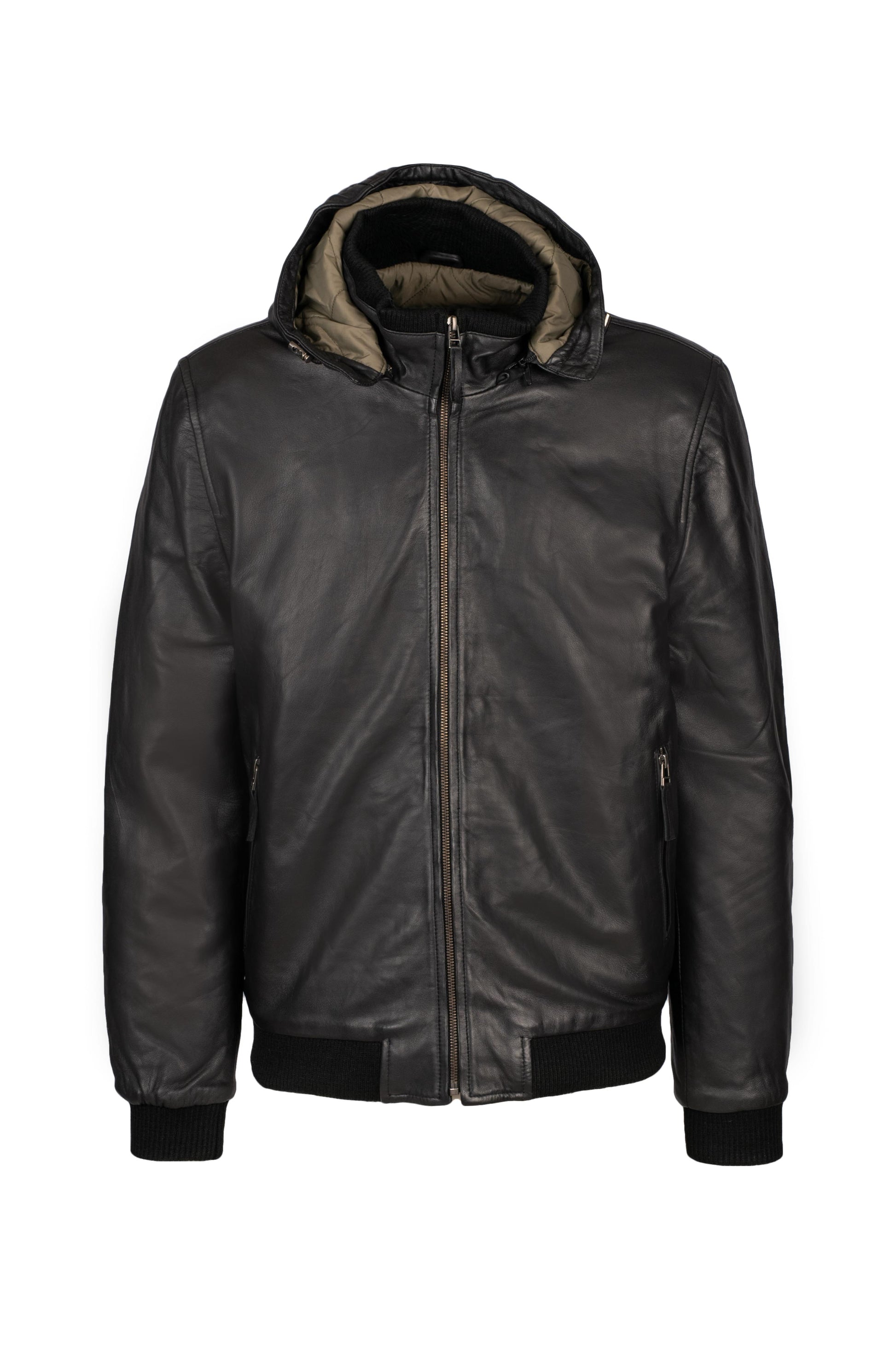 Ανδρικό Μπόμπερ Δερμάτινο με Αποσπώμενη Κουκούλα