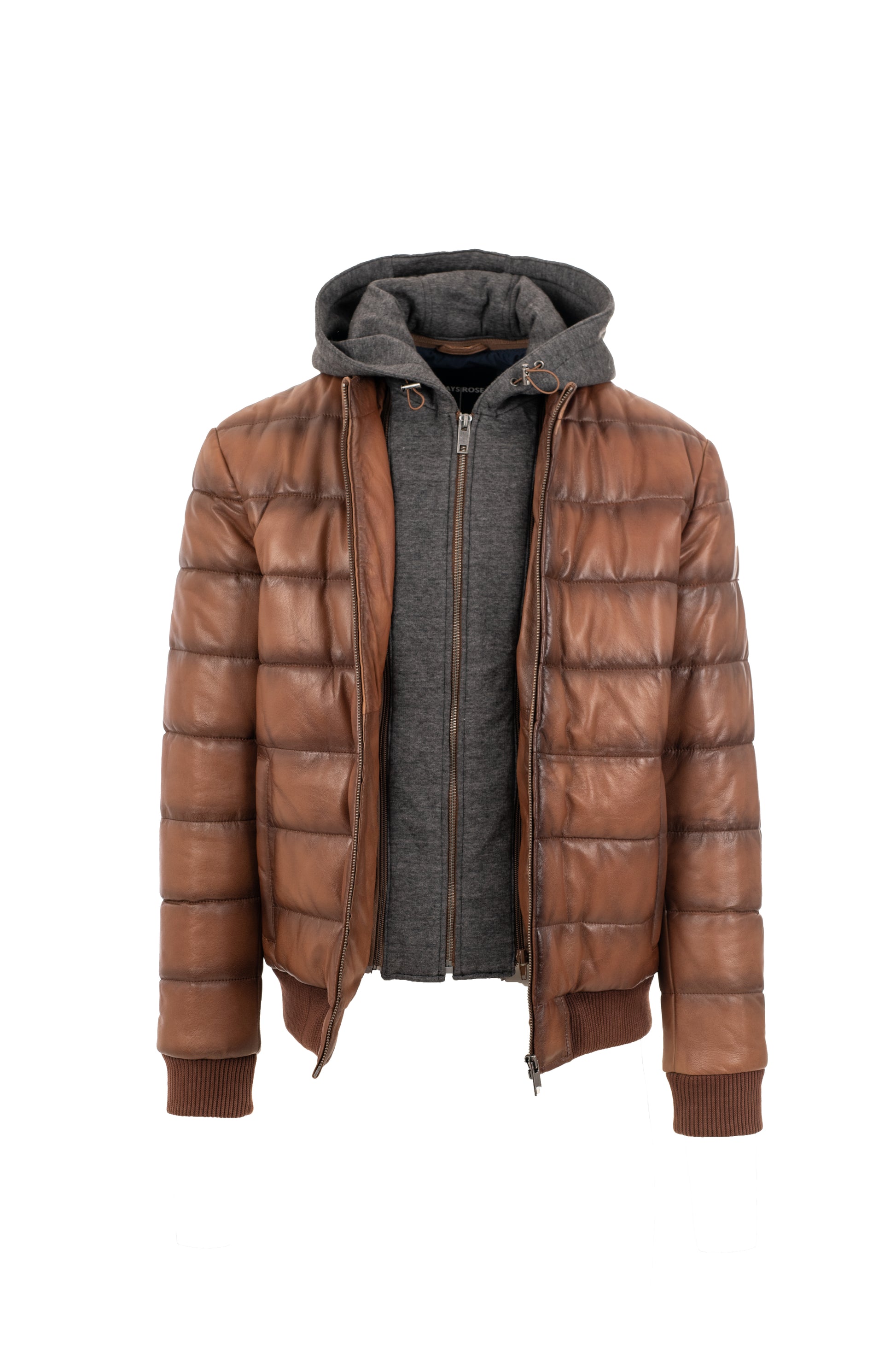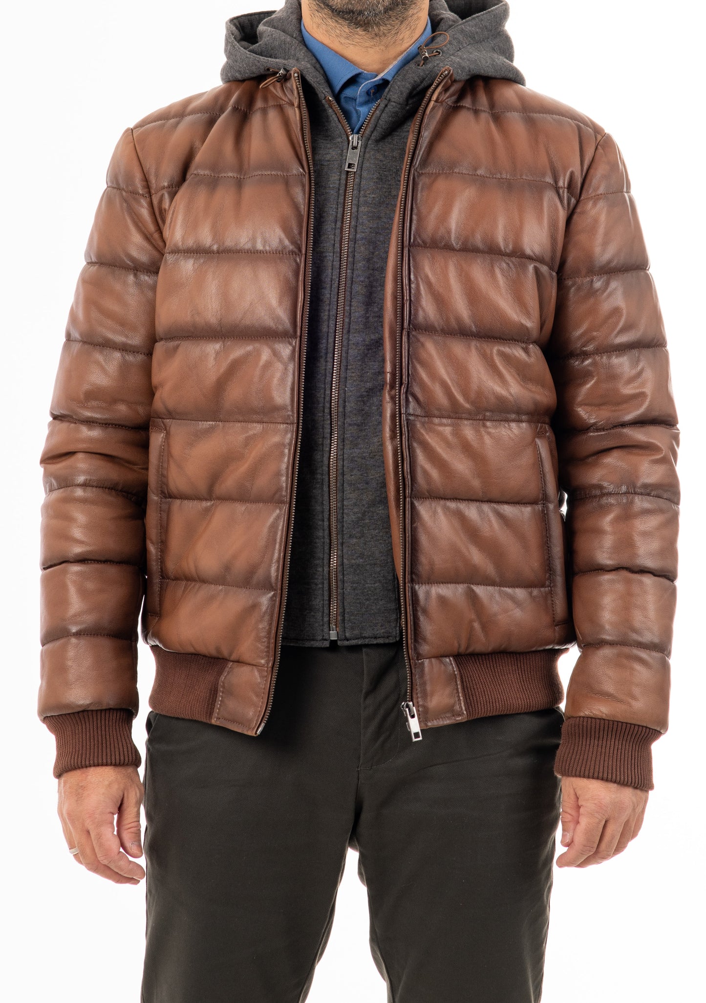 Moses - Ανδρικό Καφέ Puffed Δερμάτινο Μπουφάν