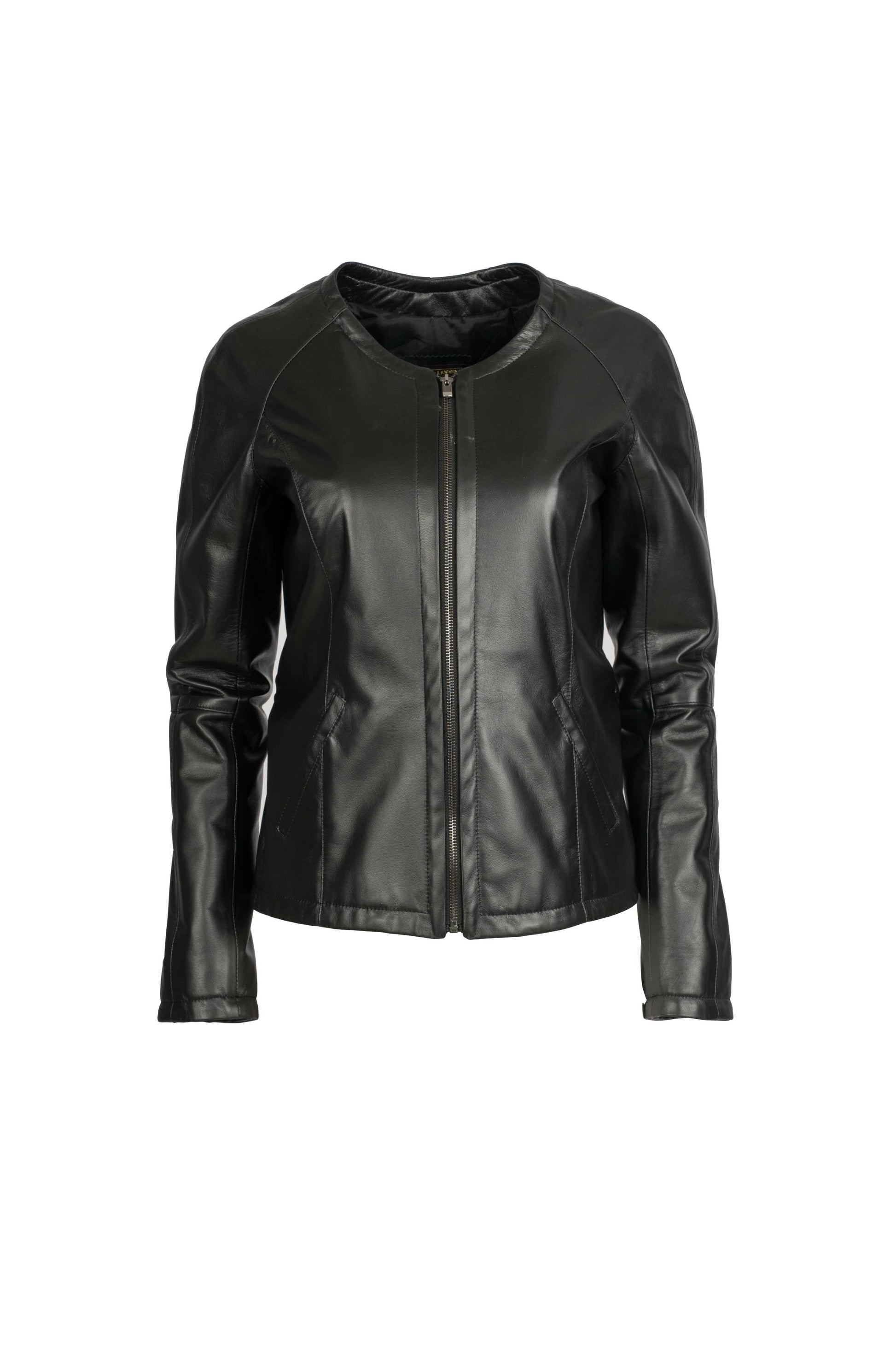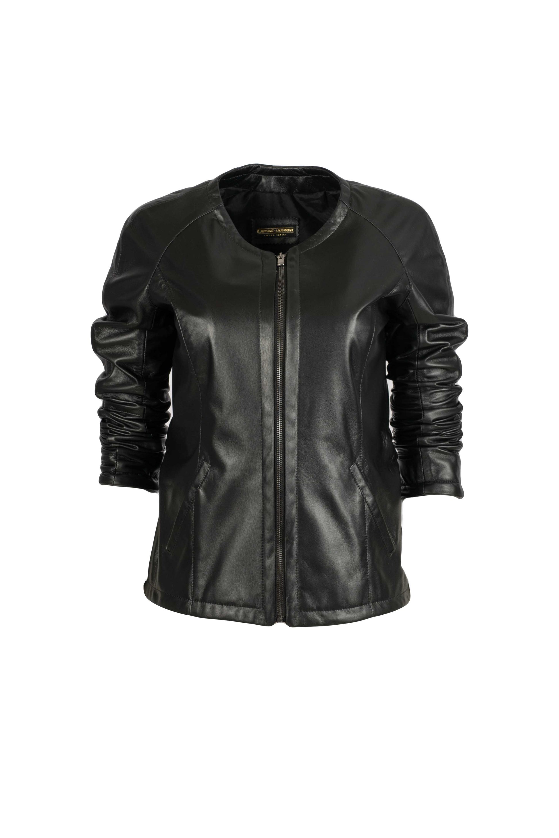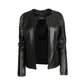 NINA - Γυναικείο Δερμάτινο Μπουφάν χωρίς Γιακά