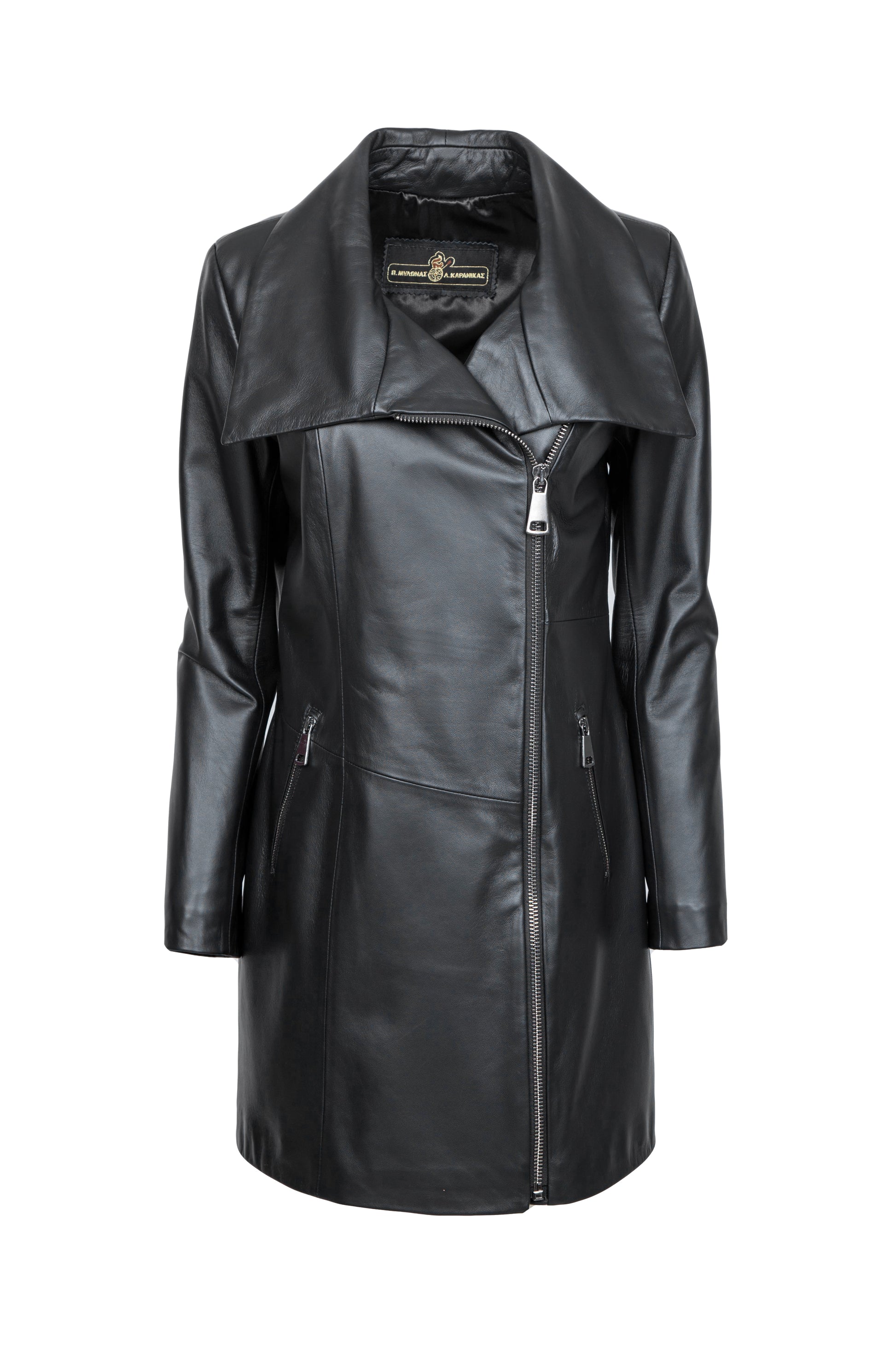 Μαύρο δερμάτινο Παλτό από δέρμα αρνιού κατεργασίας Nappa.