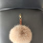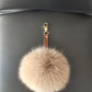 Peru Fox Fur Keychain Keyring pompom with genuine leather strap. camel FLUFFY FUR POMPOM keychain.