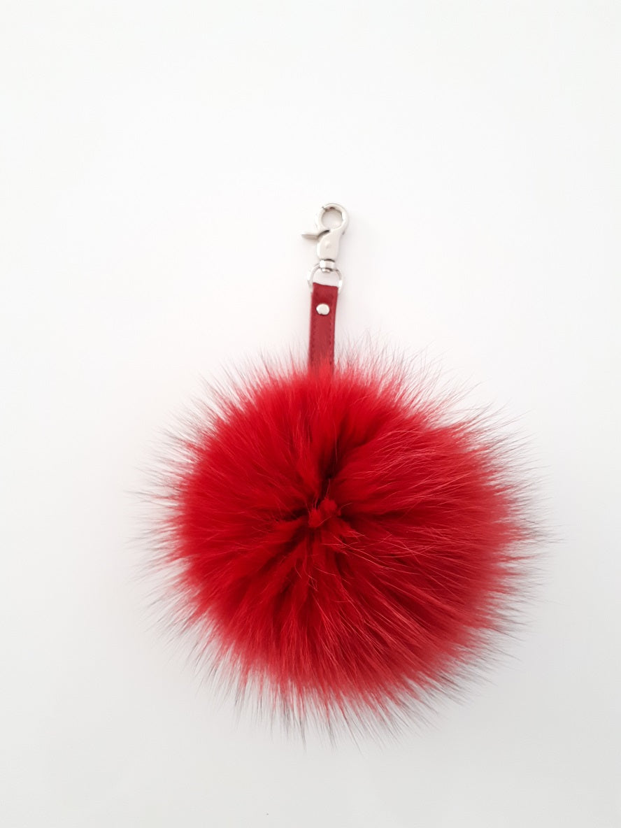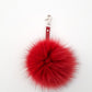 RED FUR POMPOM keyring, FLUFFY Fox Fur Keychain pompom with genuine leather strap.