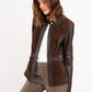 ROSSANA - Καφέ Μπουφάν από Καστόρ και Δέρμα