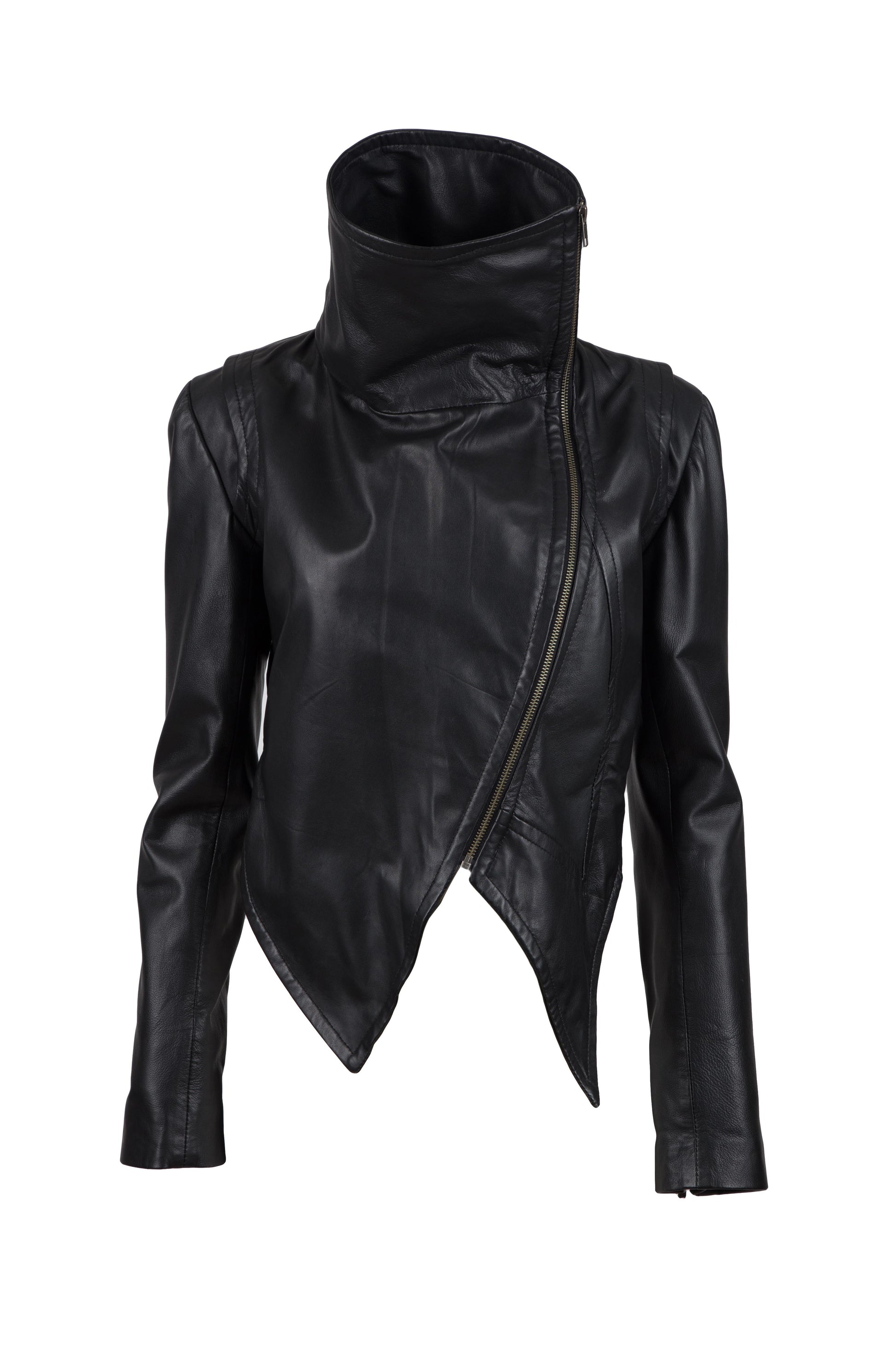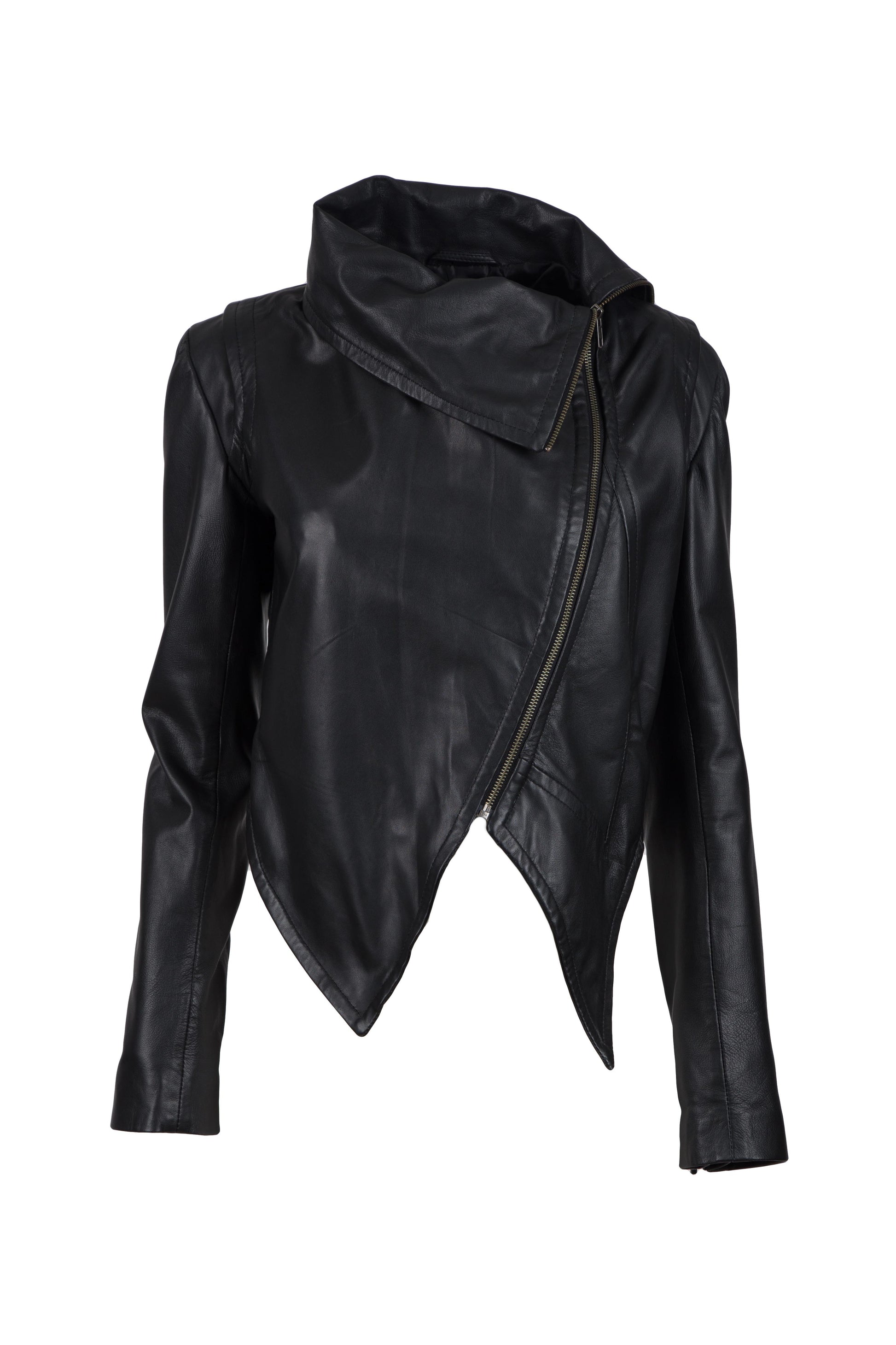 Ασύμμετρο cropped Μπουφάν από Δέρμα Νάπα Αρνιού