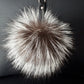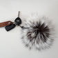 SILVER FOX FUR pompom keychain with genuine leather strap. Real fluffy fur pompom keyring.