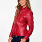 TIGERLY- Γυναικείο Κόκκινο Δερμάτινο Μπουφάν