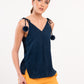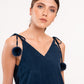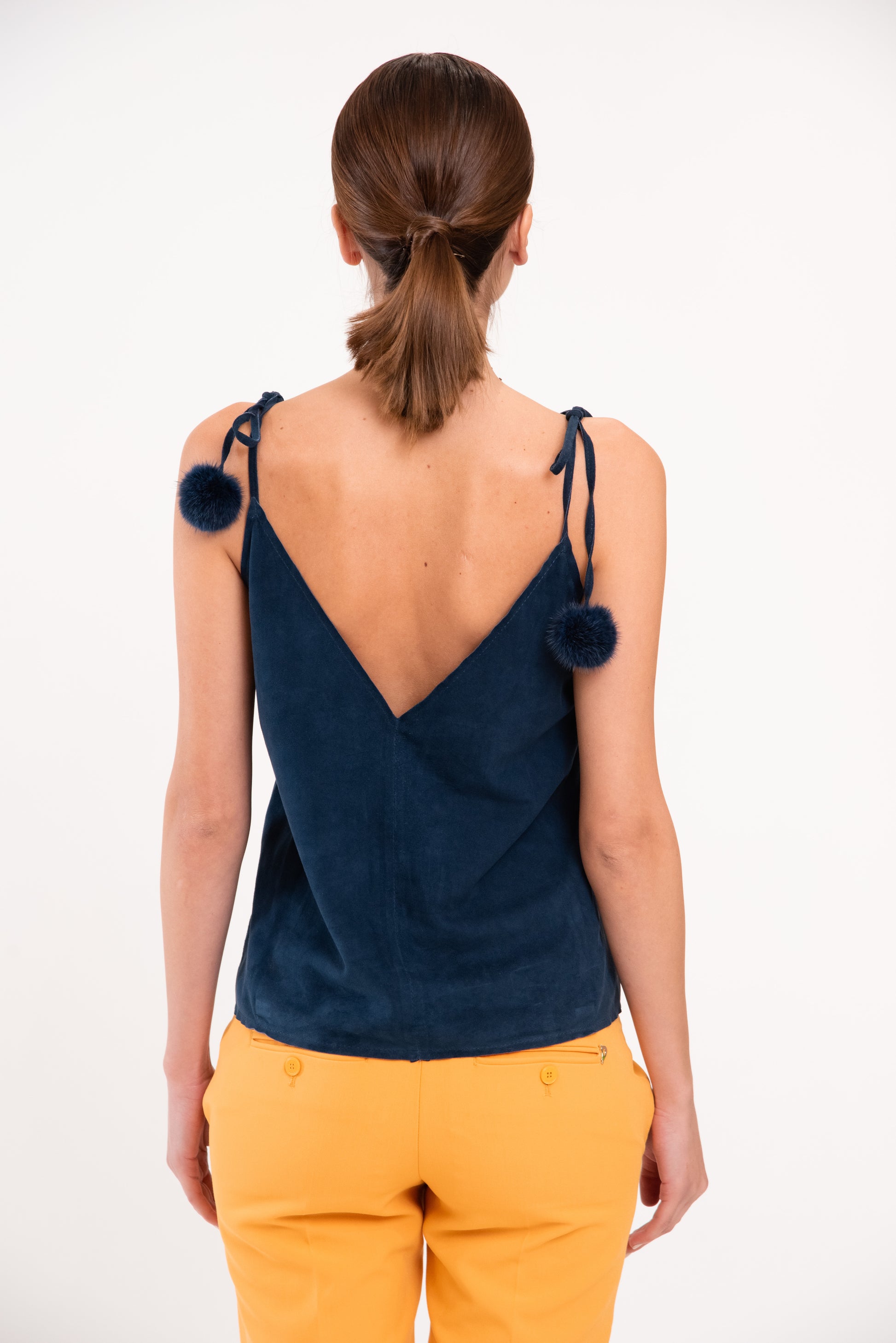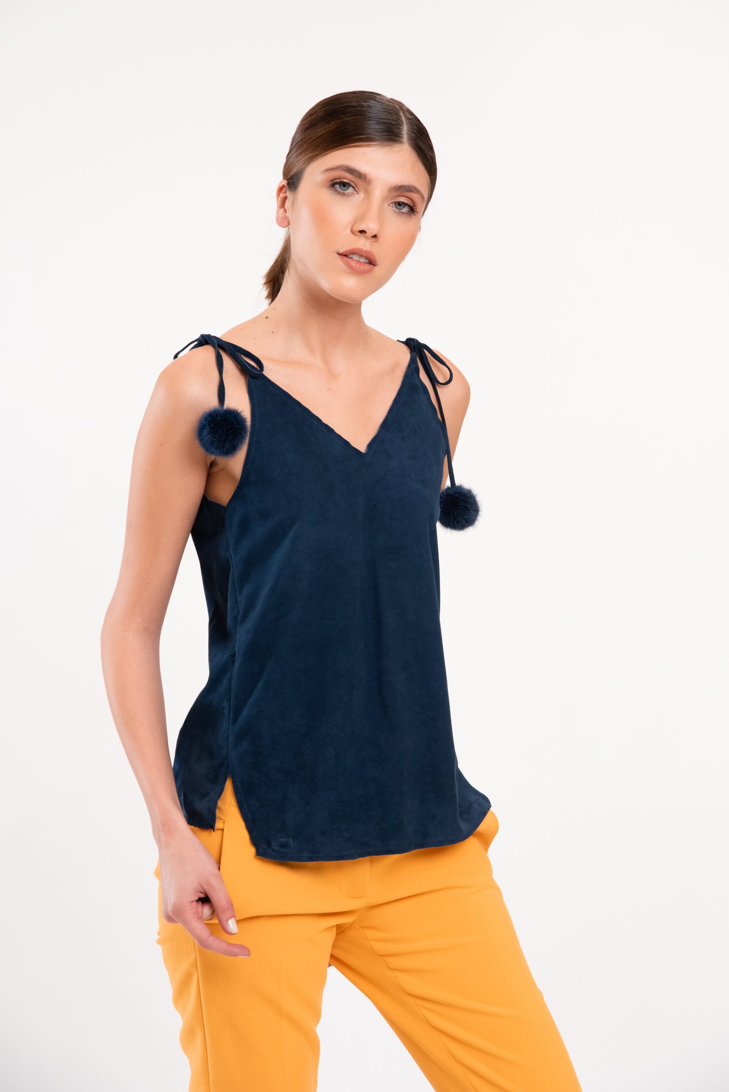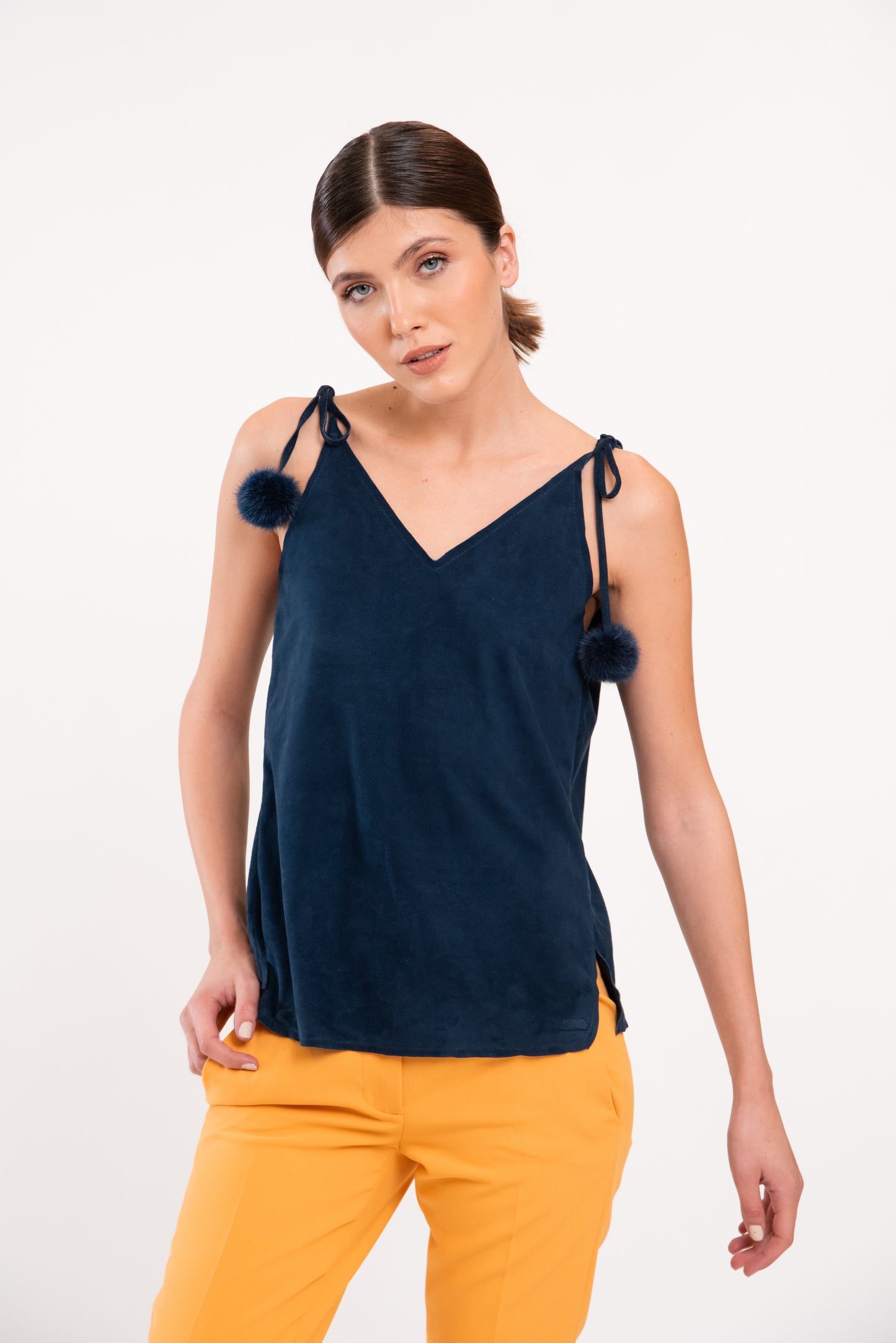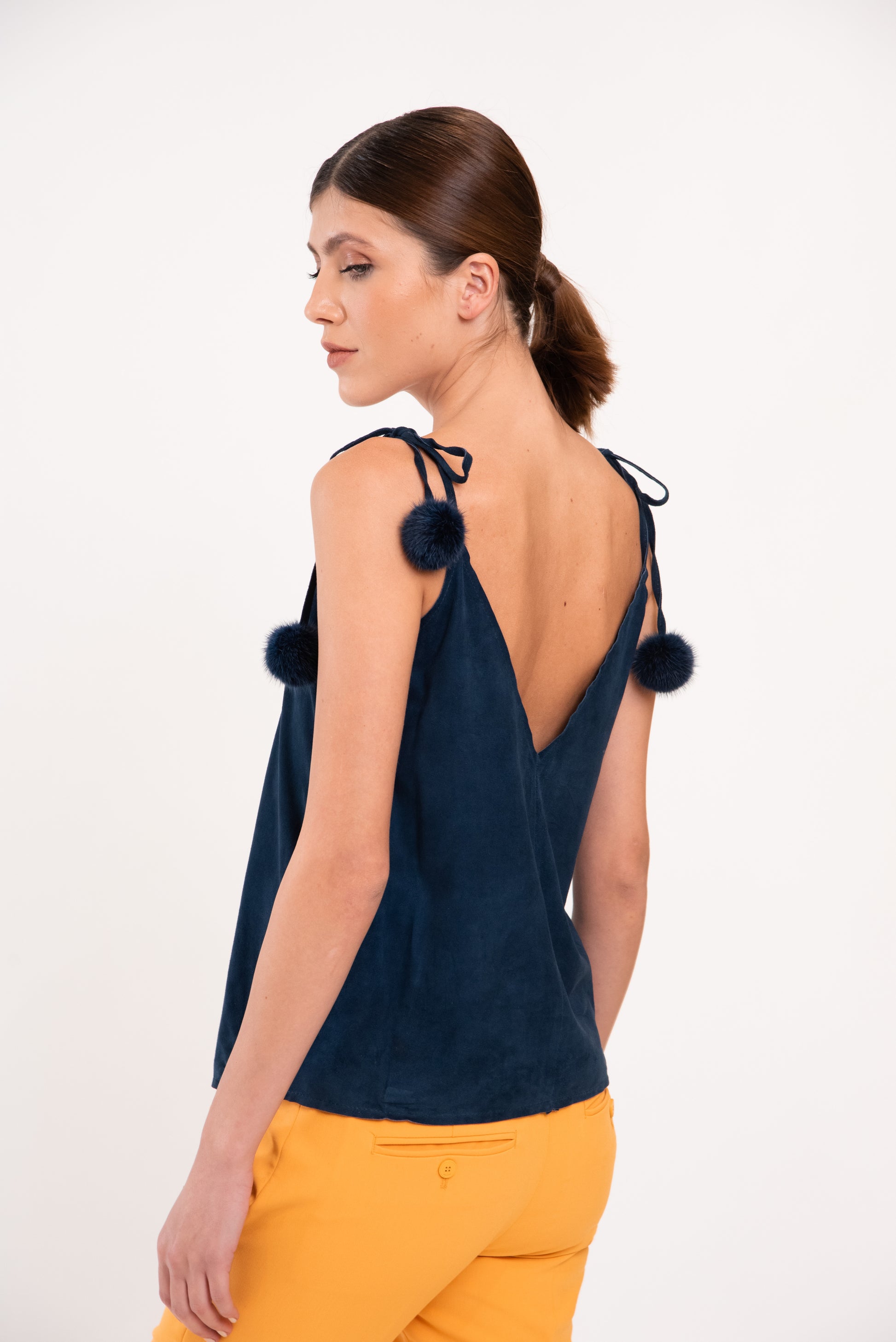 TOPSHE - Σουέτ Τοπ με Ανοιχτή Πλάτη και Γούνινα Πομπομ.