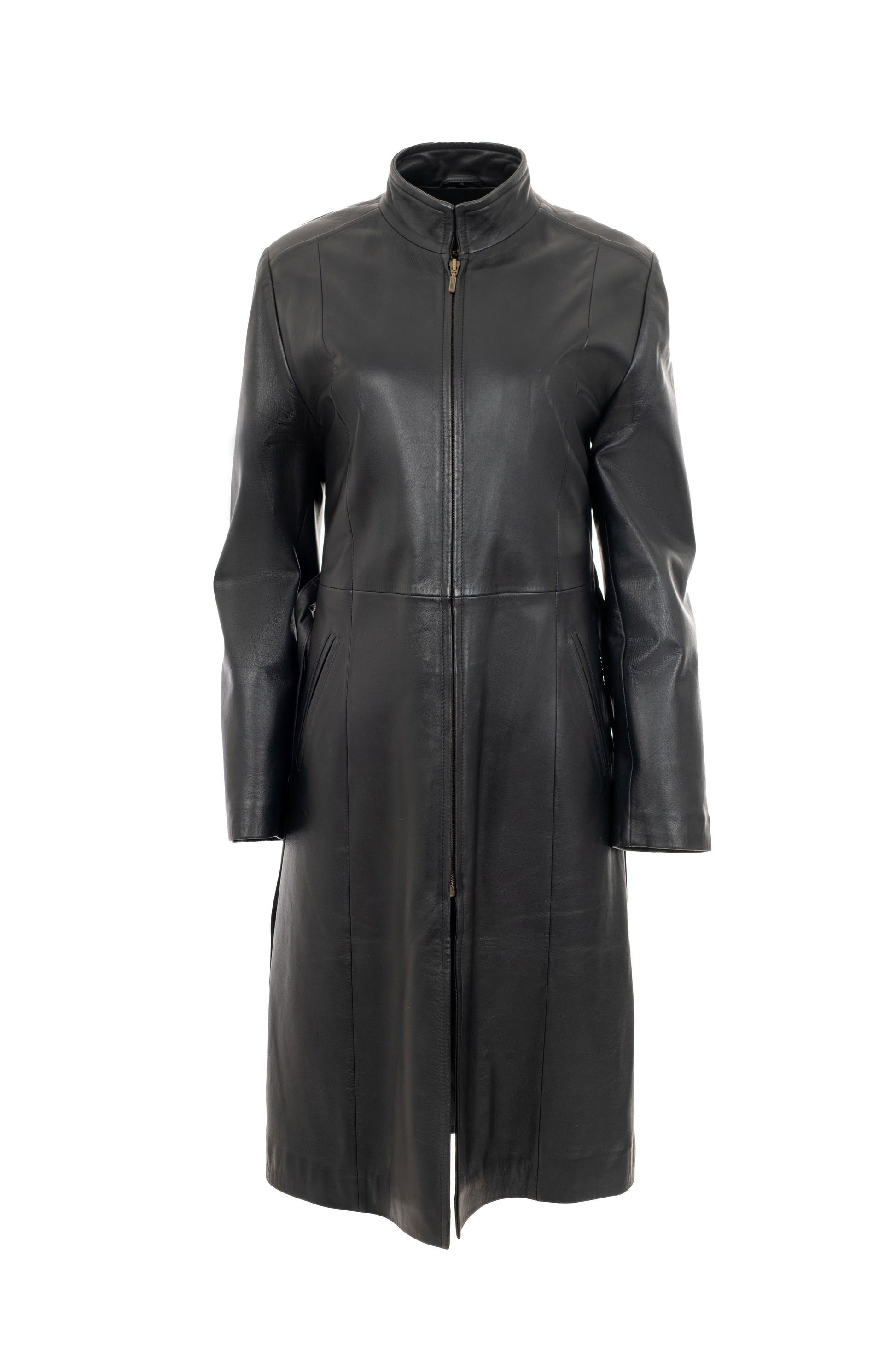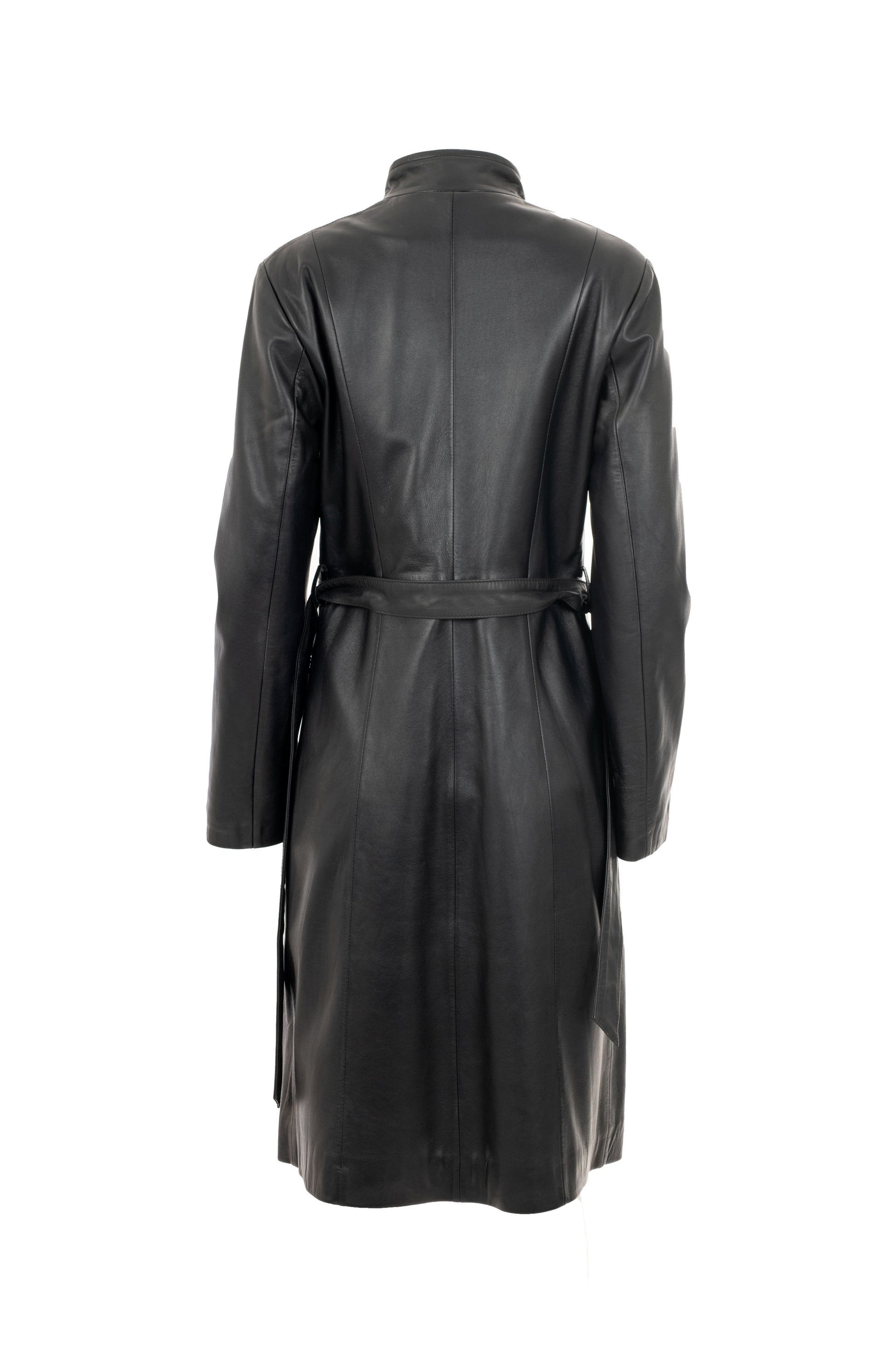 Γυναικείο Μαύρο Δερμάτινο Παλτό με Ζώνη