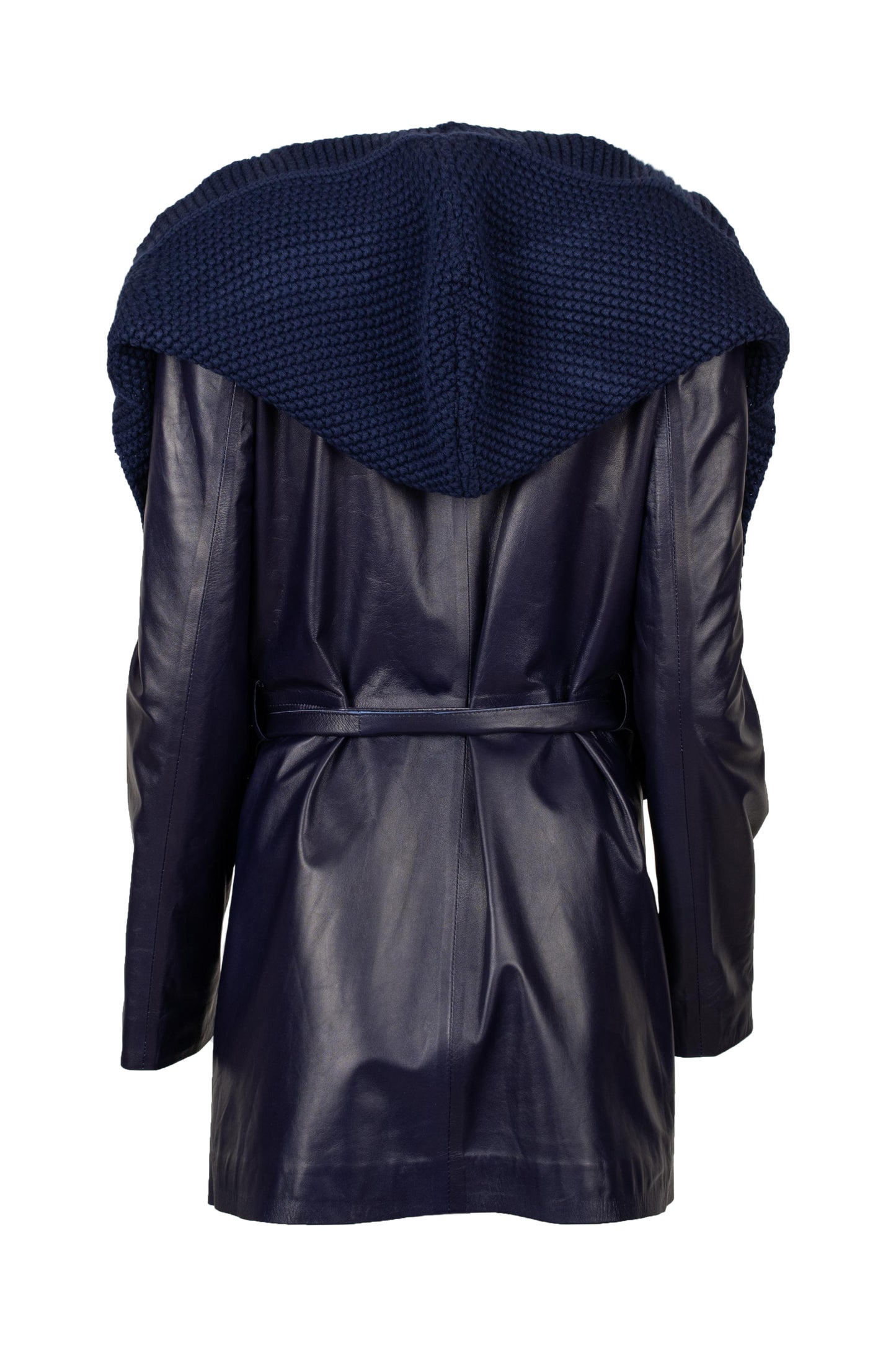 Μαλακό nappa lamb δερμάτινη ζακέτα με συνδυασμό με πλεκτό γιακά και δερμάτινη ζώνη
