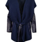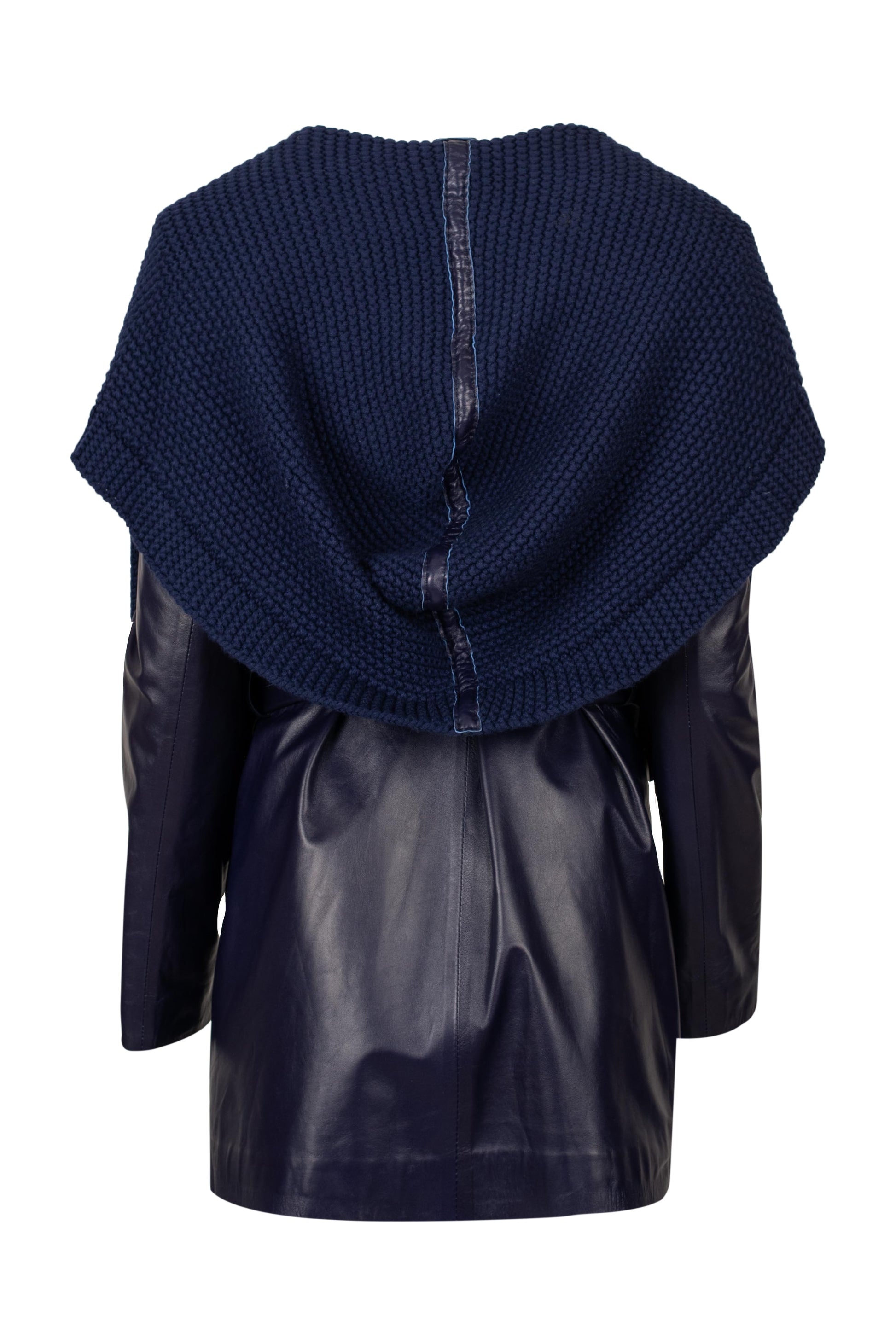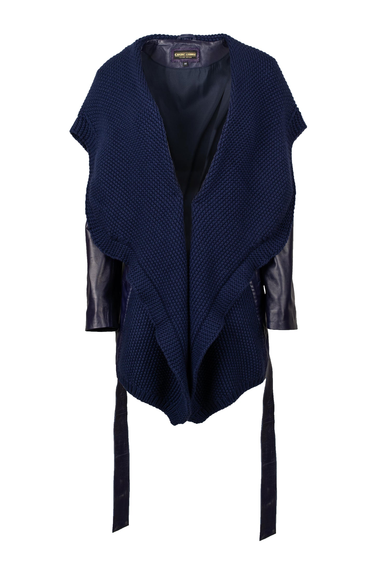 Γυναικεία Μπλε Δερμάτινη Ζακέτα με Πλεκτό