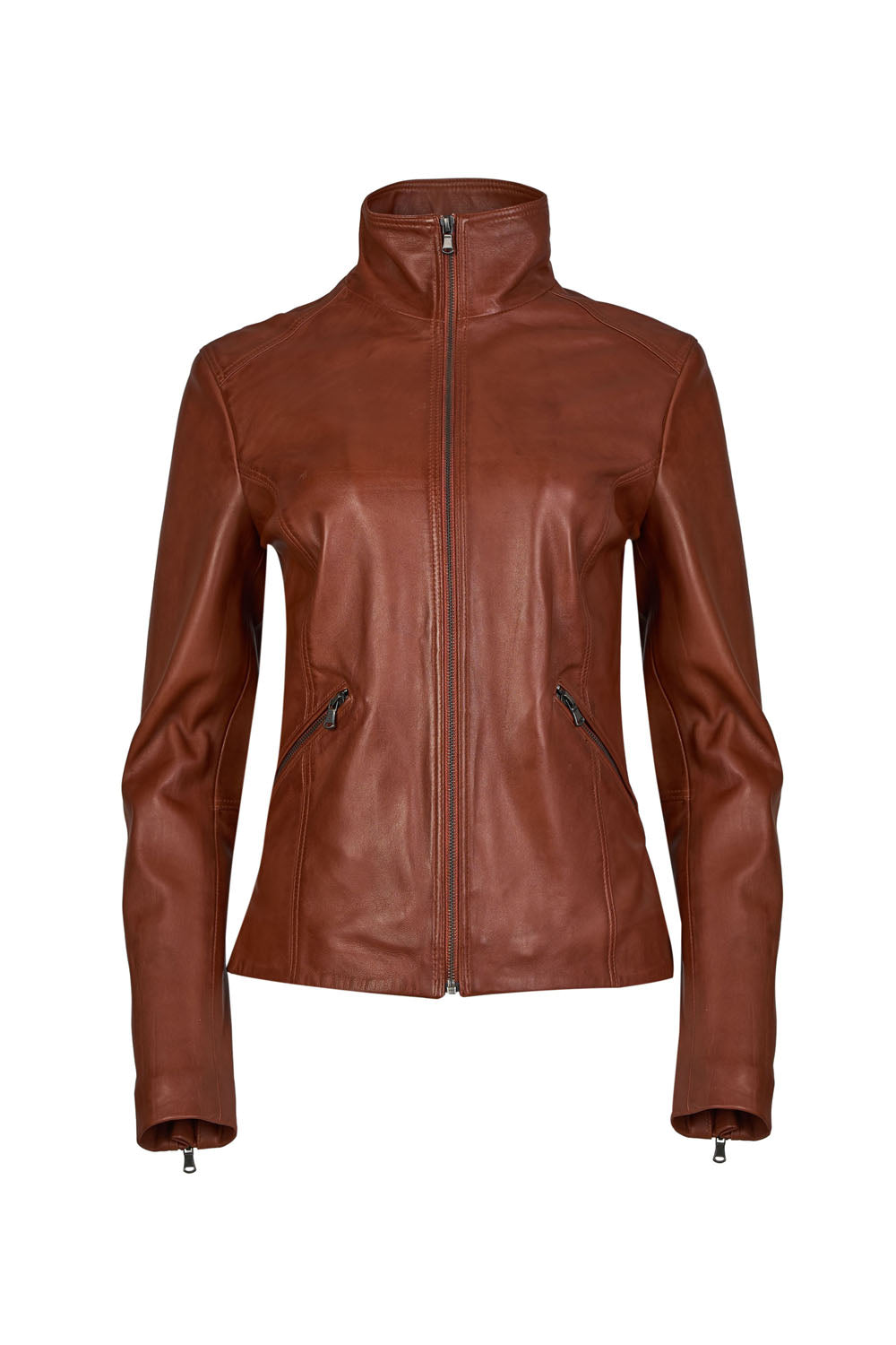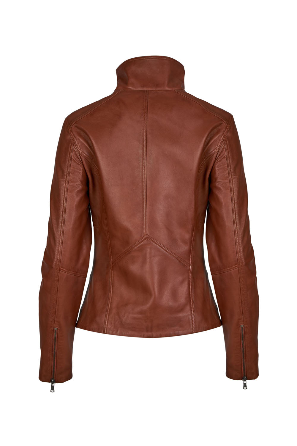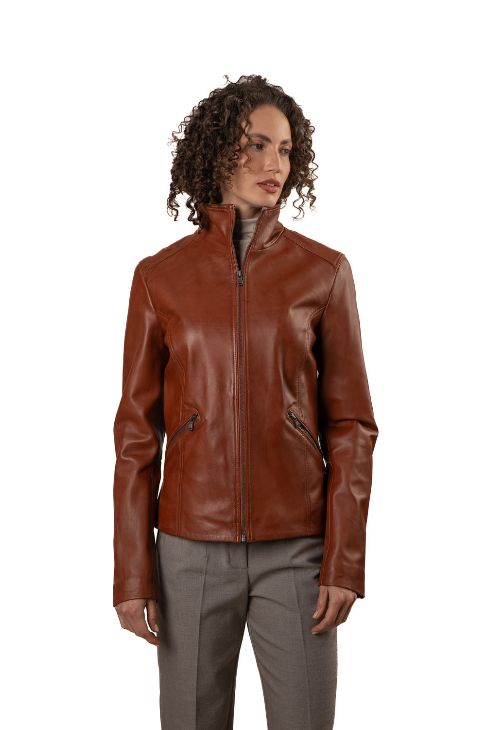 Γυναικείο δερμάτινο μπουφάν σε χρώμα Ταμπά-κονιάκ,