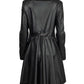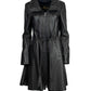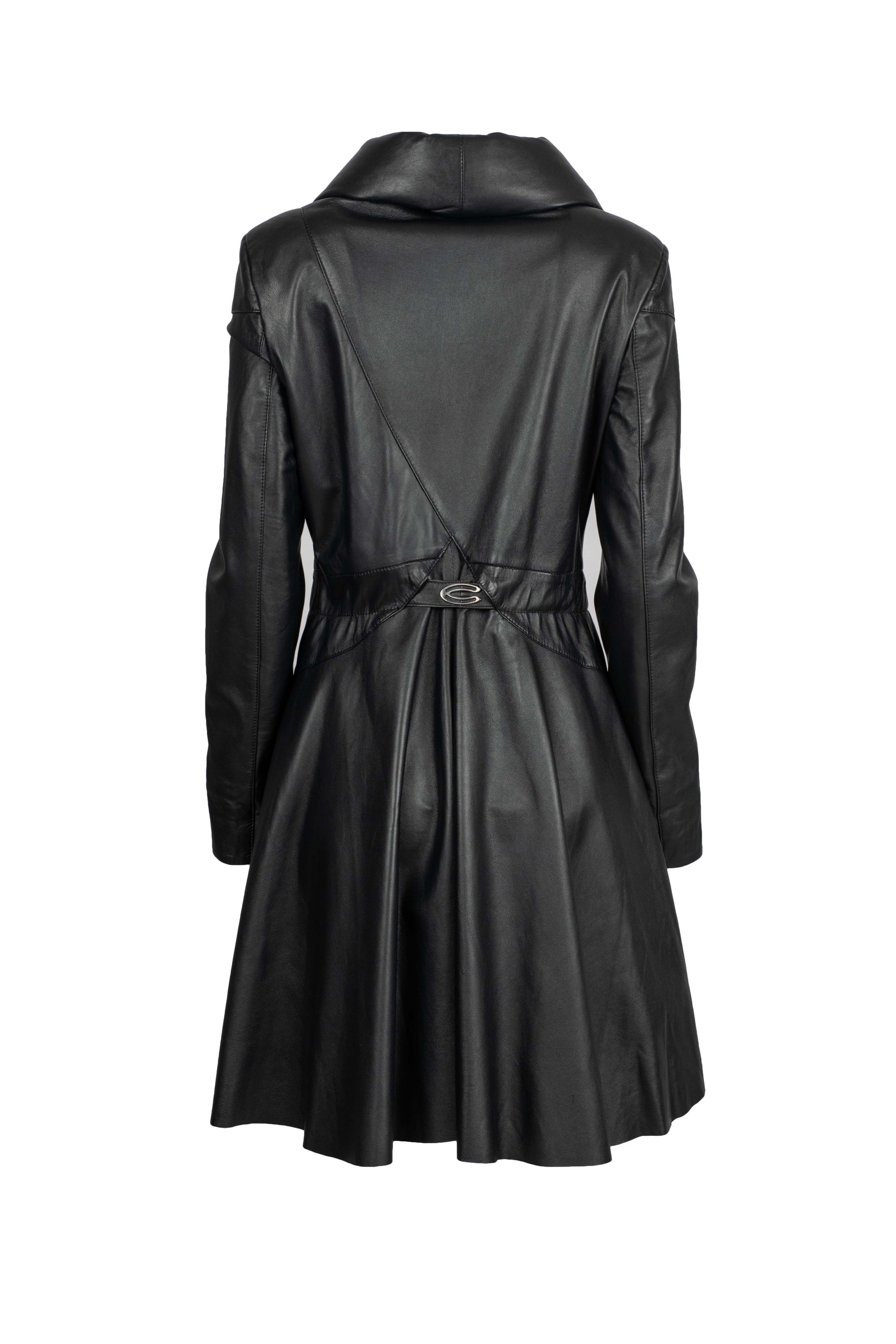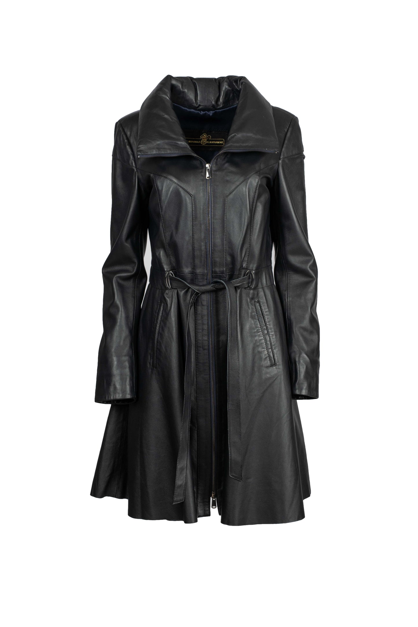 Αυτό το κομψό παλτό αποτελείτε απί απαλό δέρμα αρνιού κατεργασίας νάπα σε ματ μαύρο χρώμα.