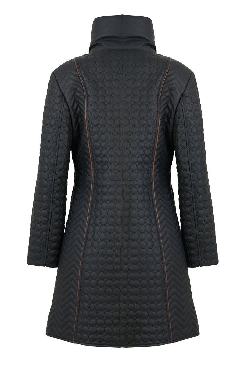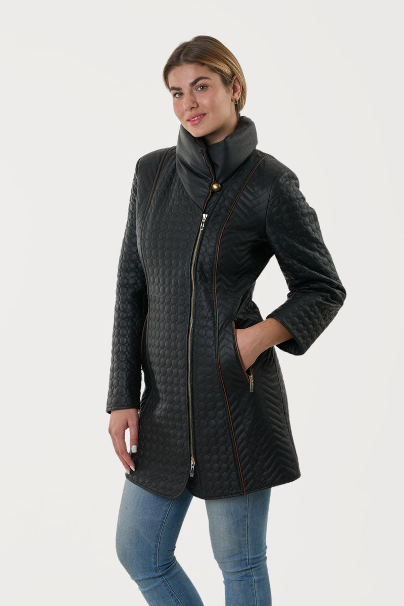 υναικείο καπιτονέ δερμάτινο παλτό με λεπτομέρειες από καμηλό δέρμα.