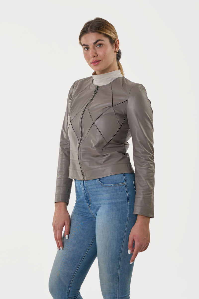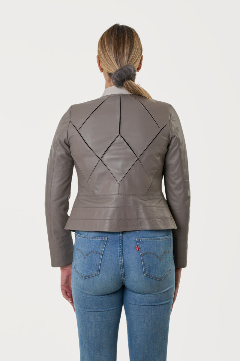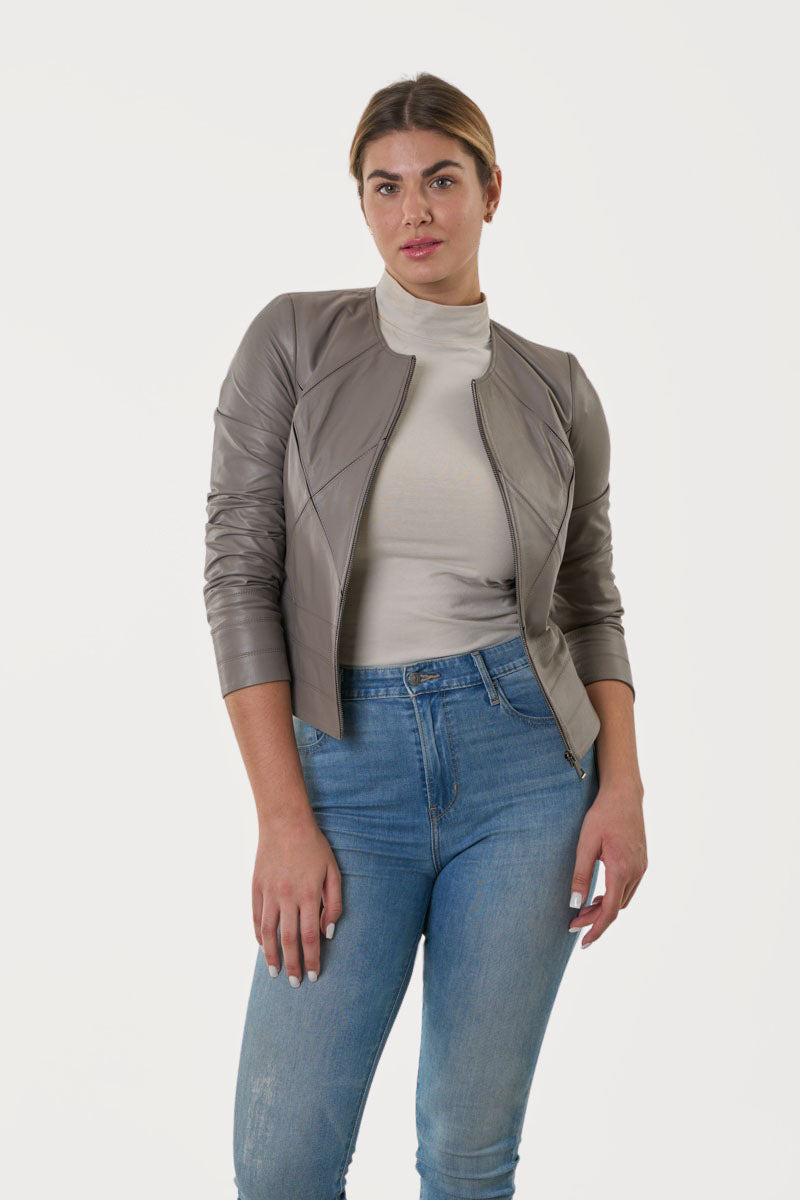 Γυναικείο Κοντό Γκρι Δερμάτινο τζάκετ