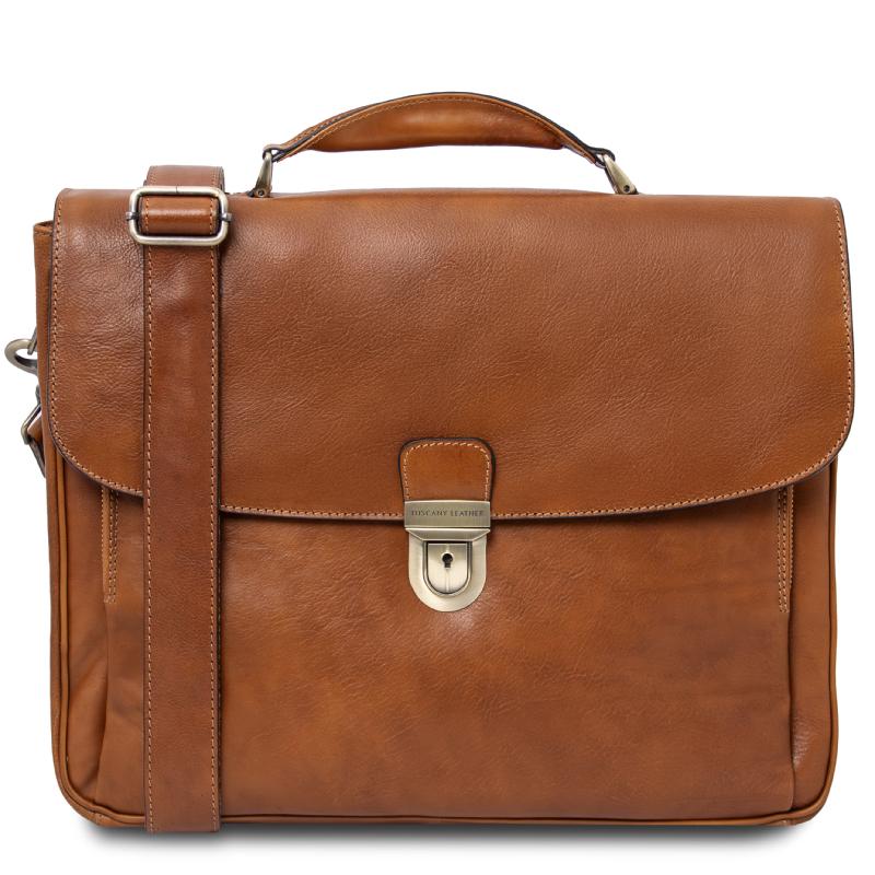 - Μεταλλικό κούμπωμα ώθησης με κλειδί και χαραγμένο λογότυπο Tuscany Leather