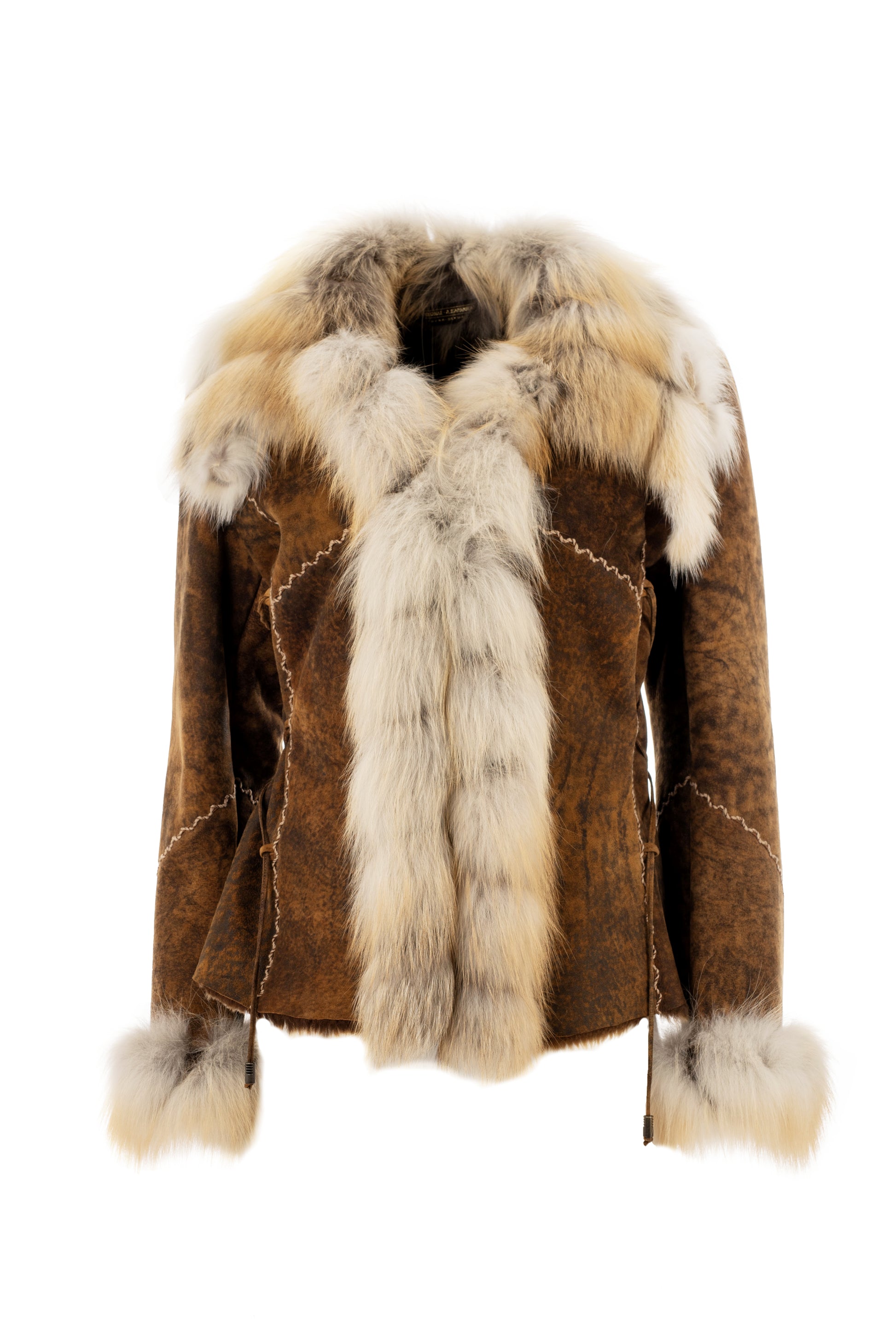 3001 - Antique Brown Sheepskin Jacket with Fur Collar