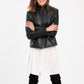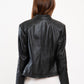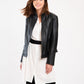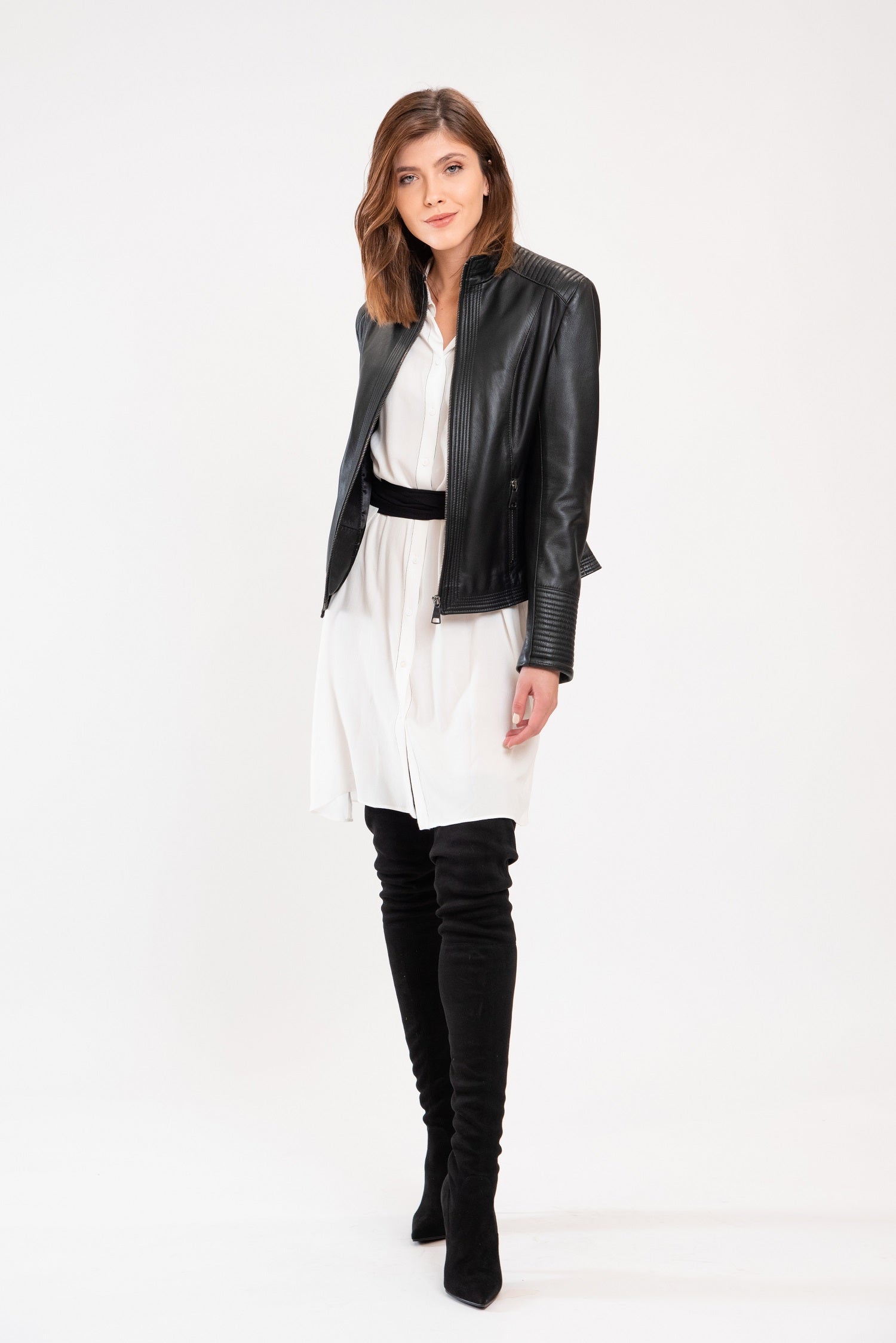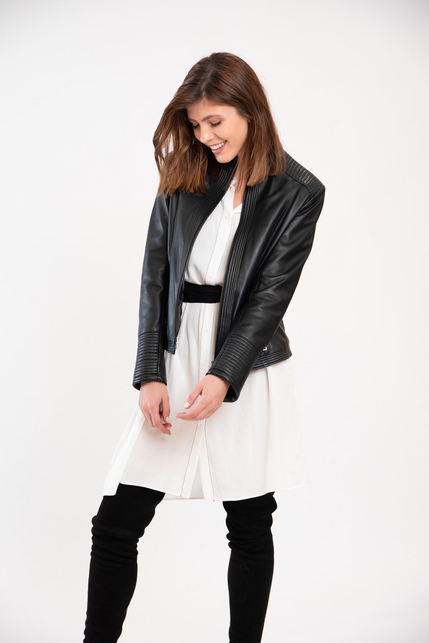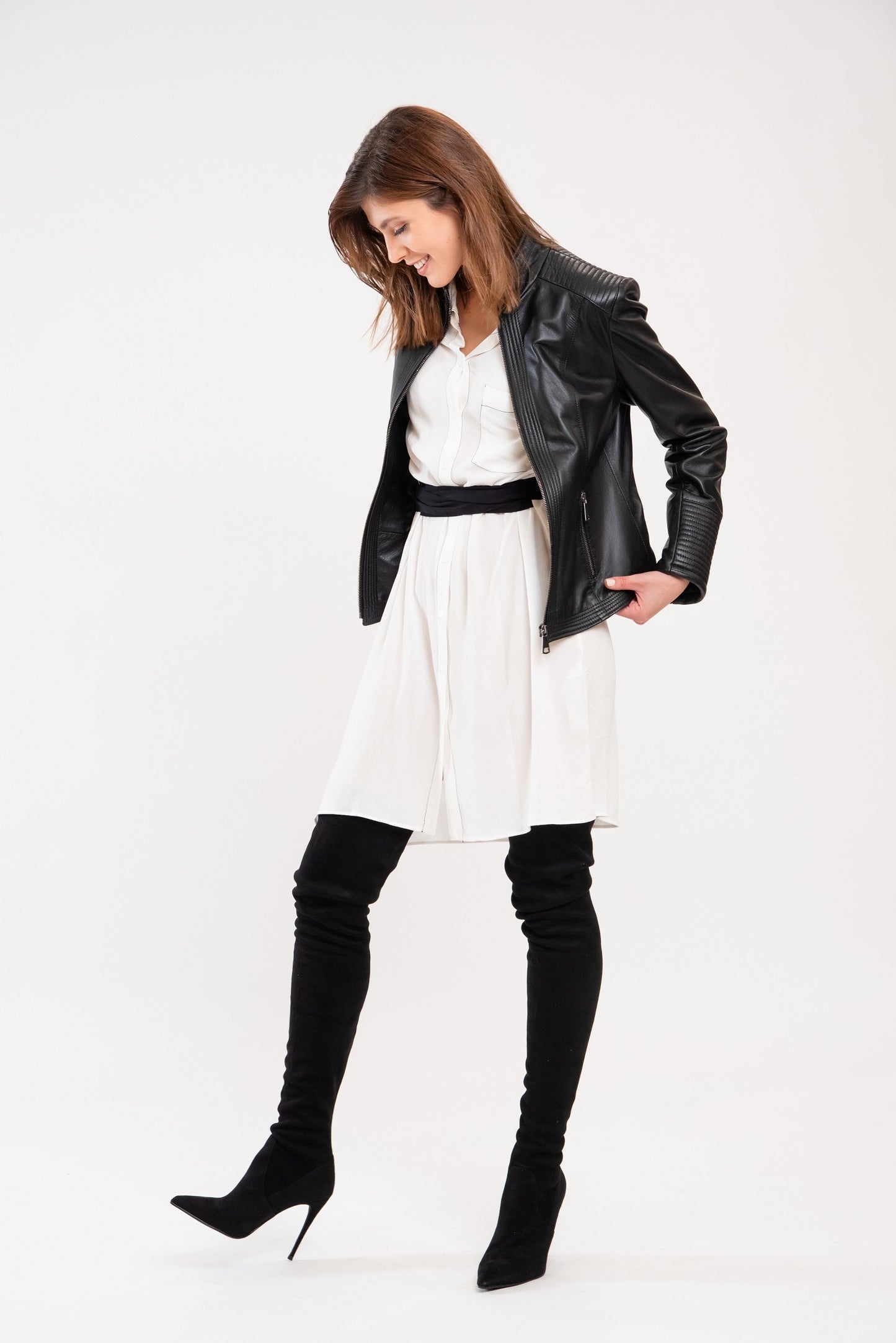Handmade women's biker jacket crafted from premium black nappa lamb leather.