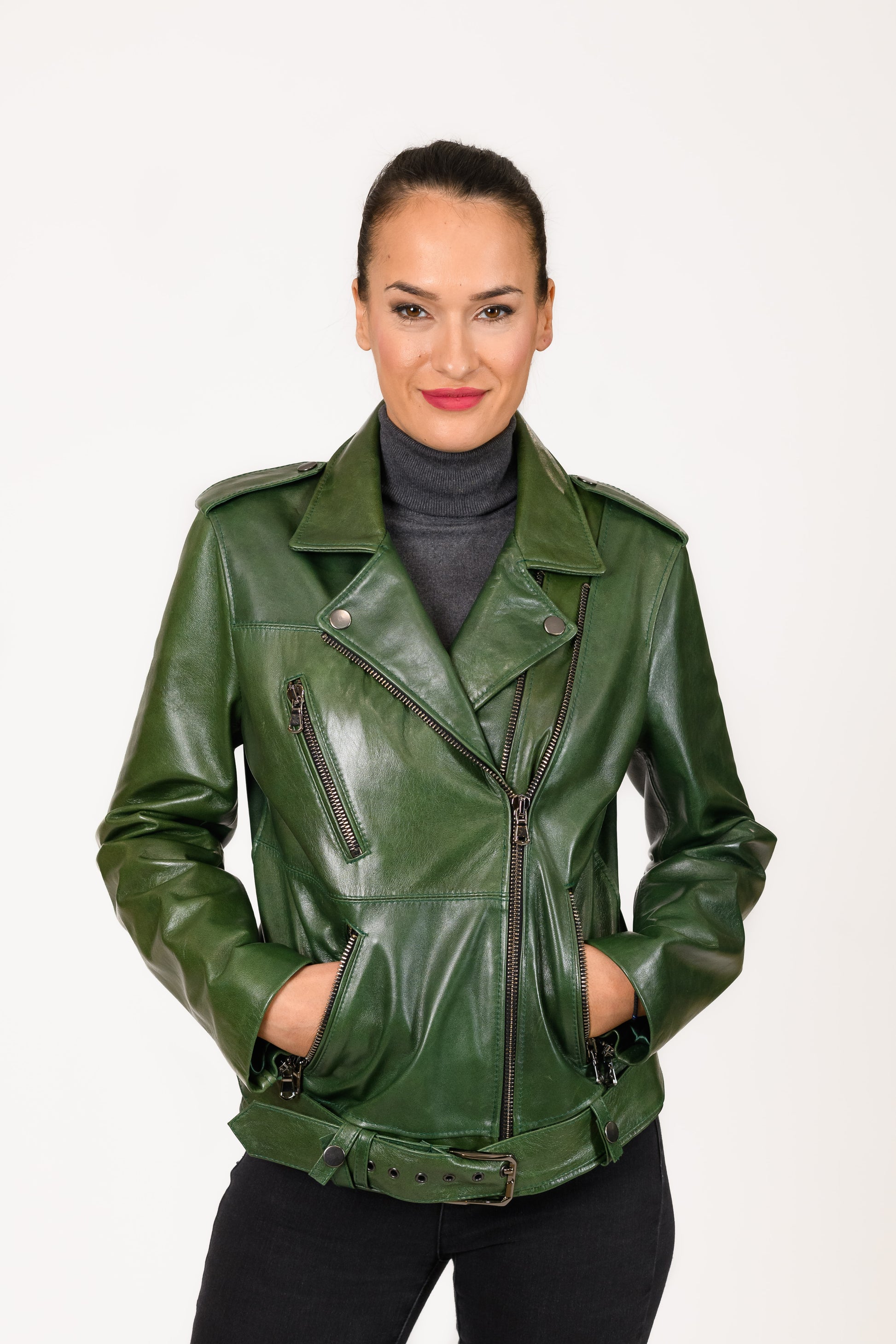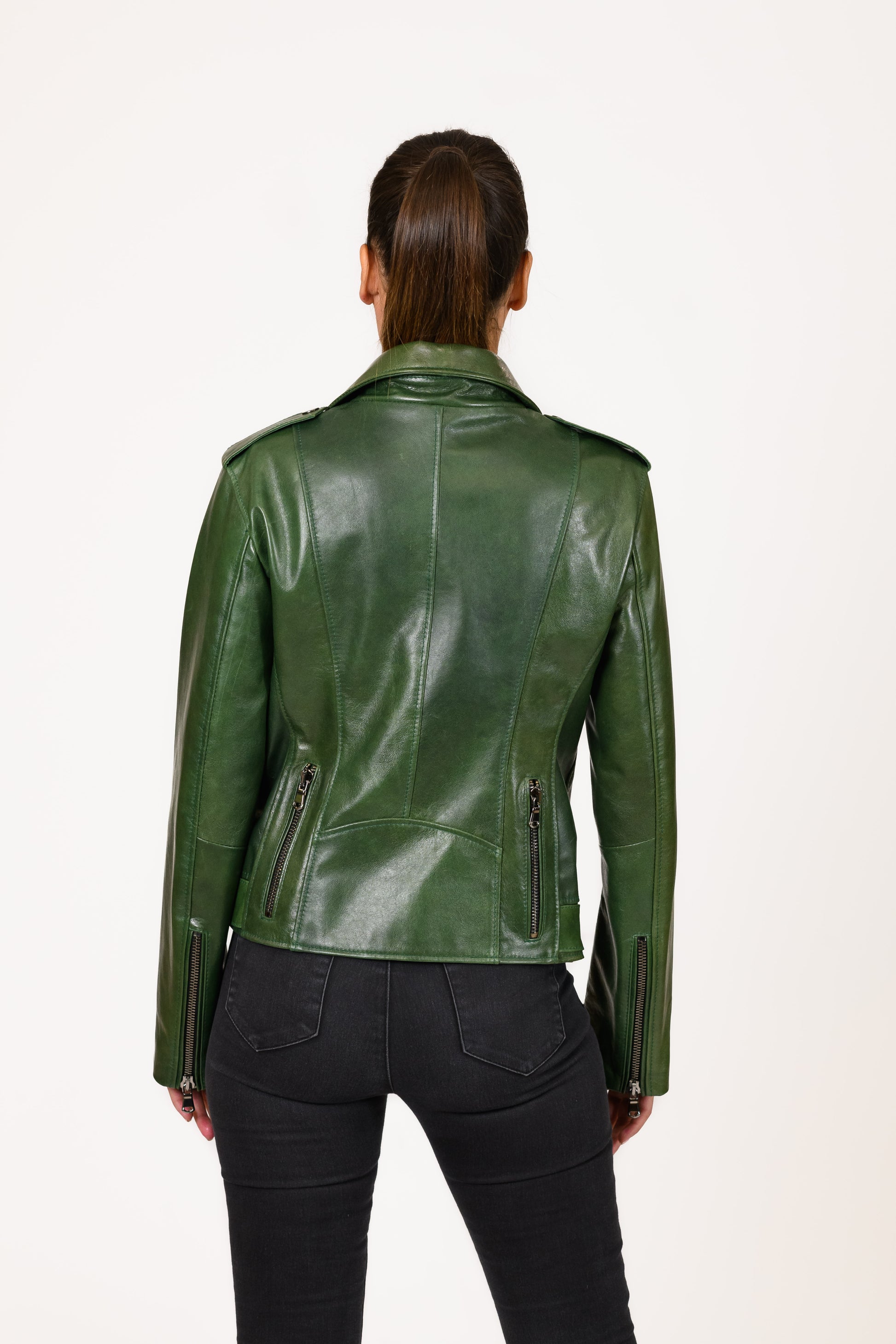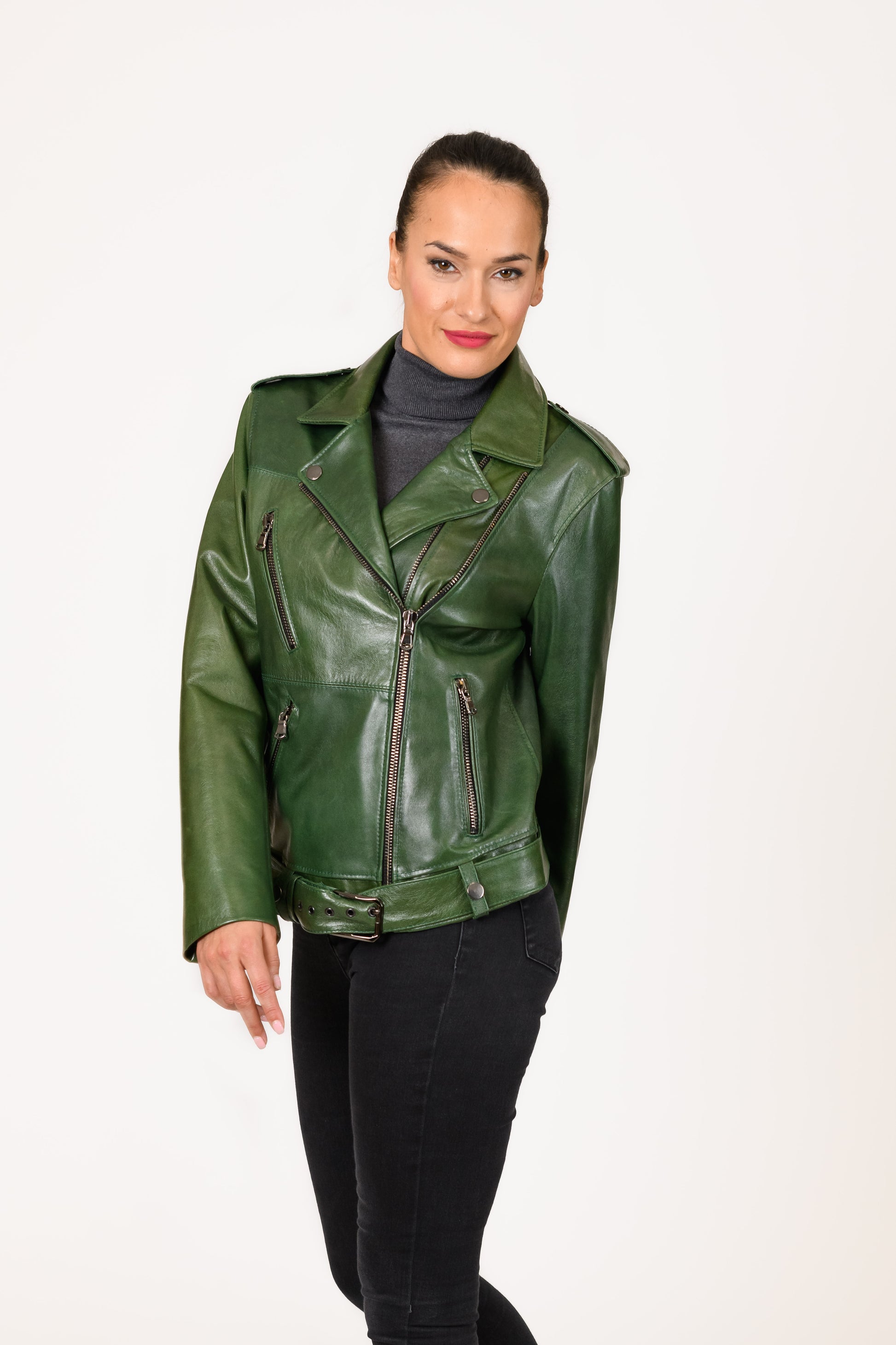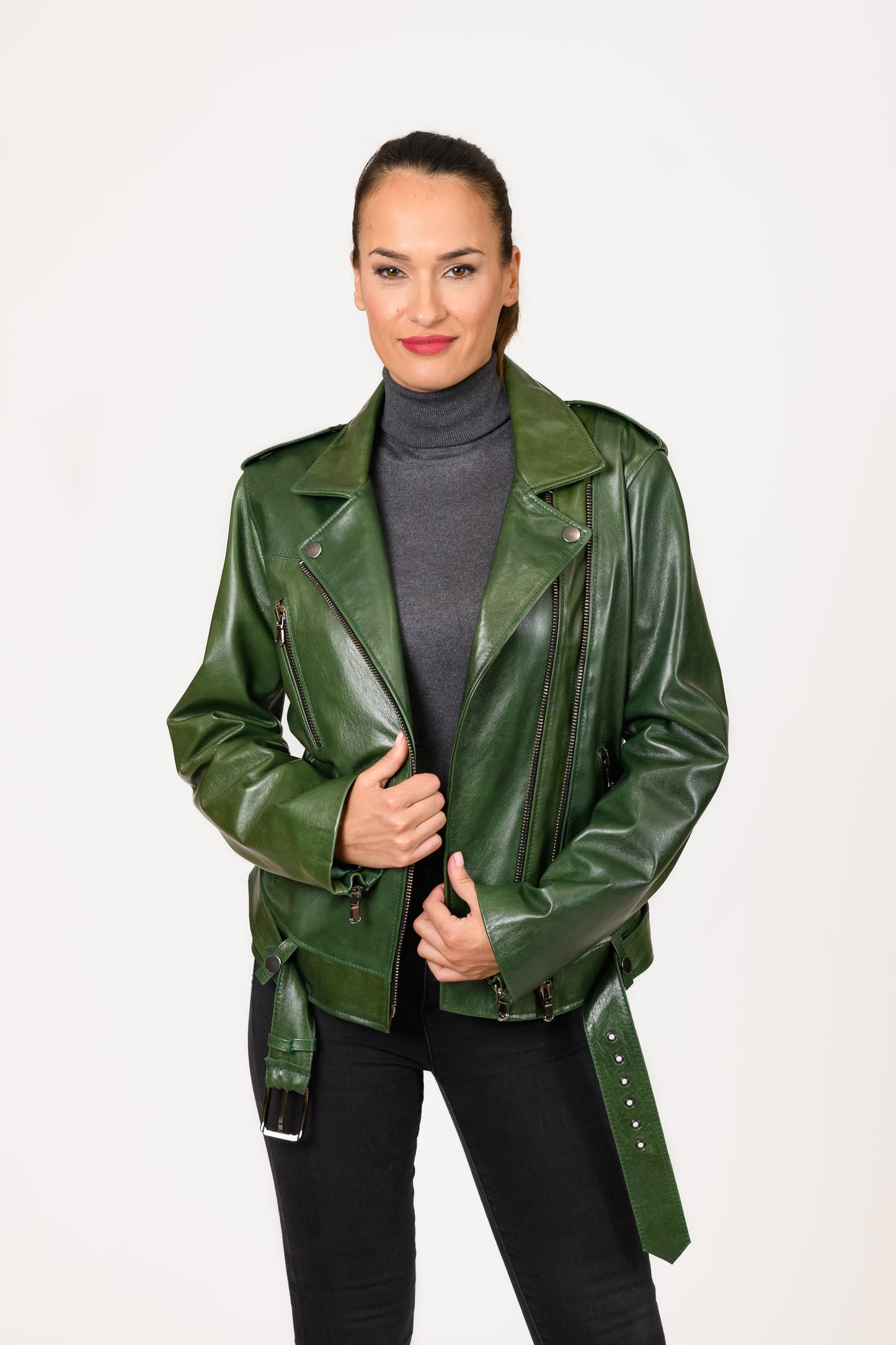 Handmade leather jacket with dual zipper for adjustable fit — 2 sizes in one jacket.