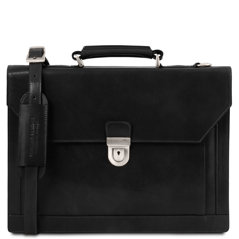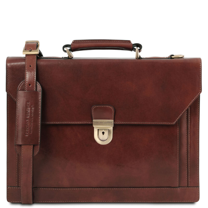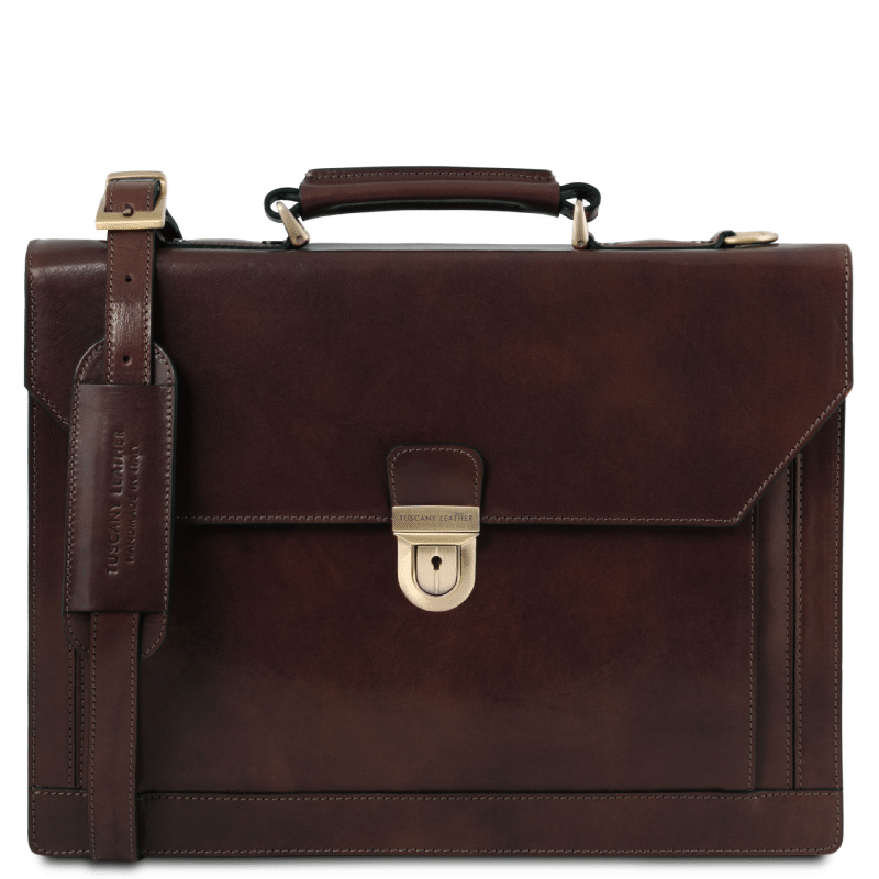 - Μεταλλικό κούμπωμα ώθησης με κλειδί και χαραγμένο λογότυπο Tuscany Leather
