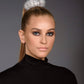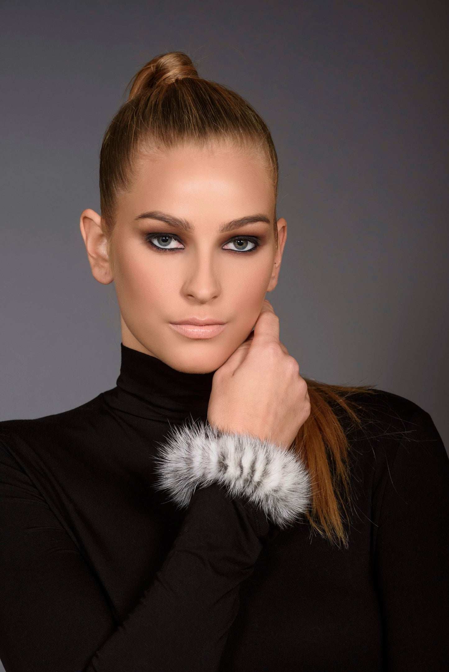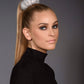 natural color black cross (white with black tops) mink fur sewed in elastic ponytail holder.