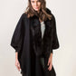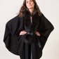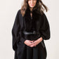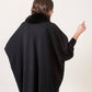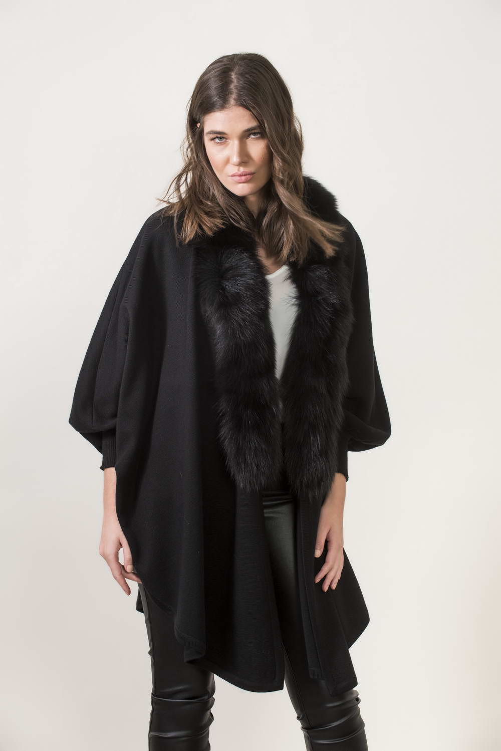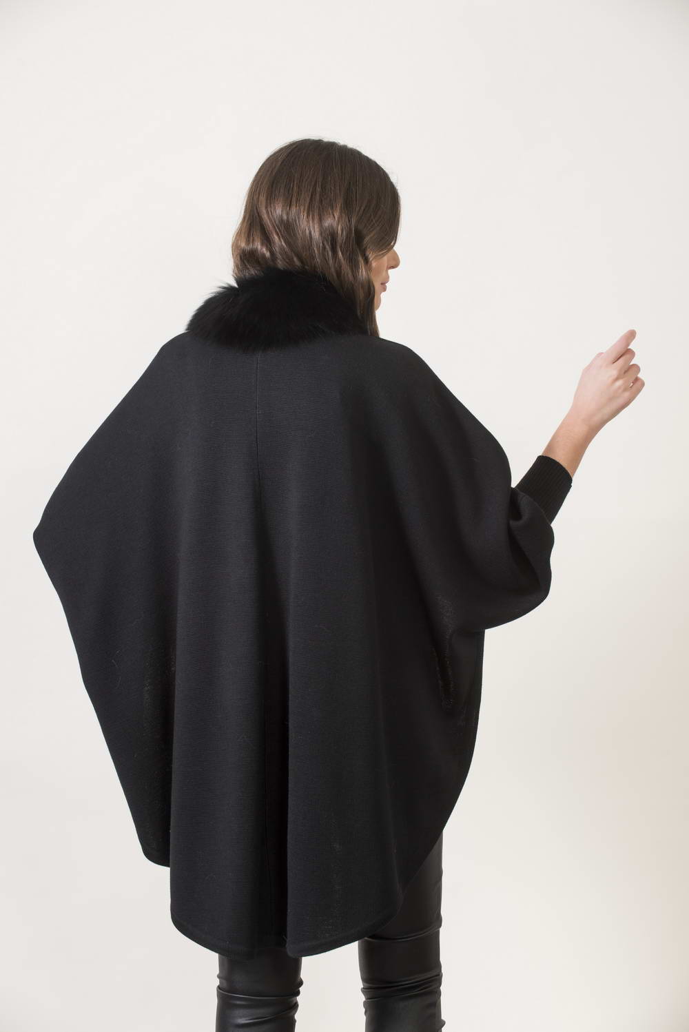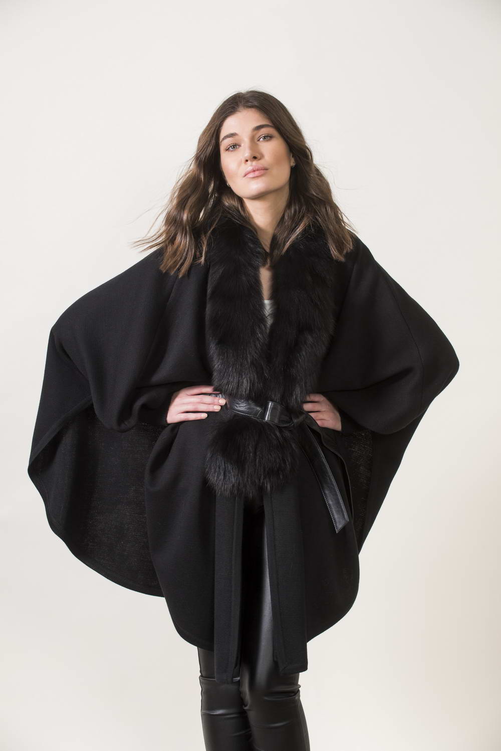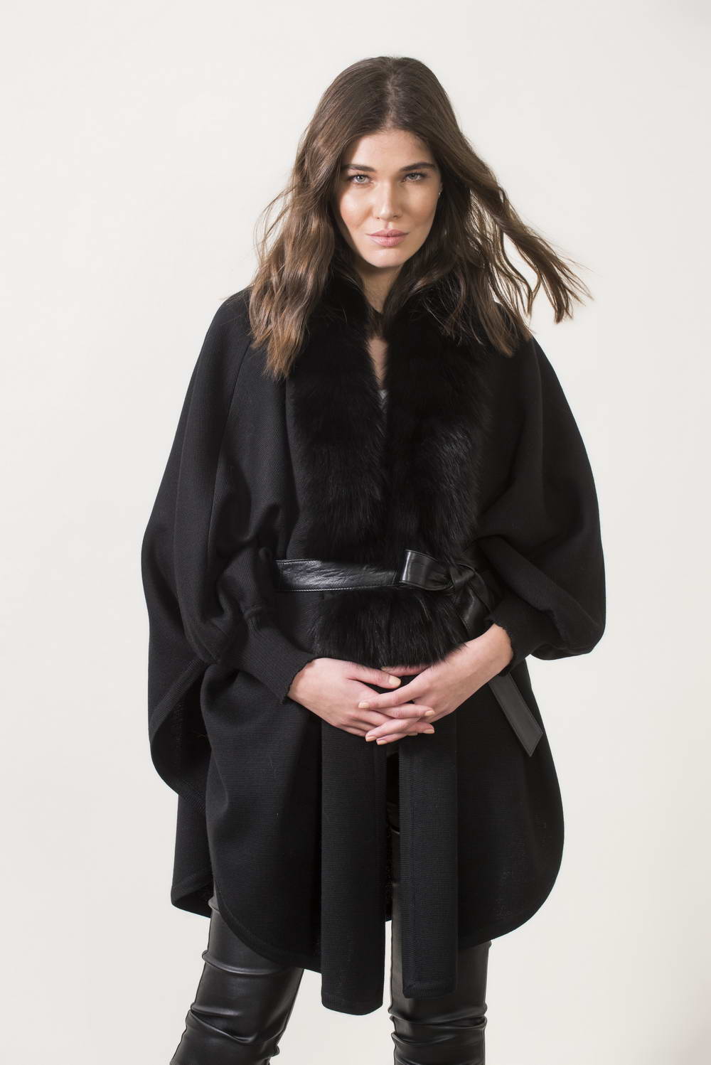 Black knitting cape with fox trimming. We offer a leather belt as a gift to combine.