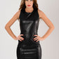 Leather dress made by soft and durable leather (front) and quality elastic scuba fabric (back).