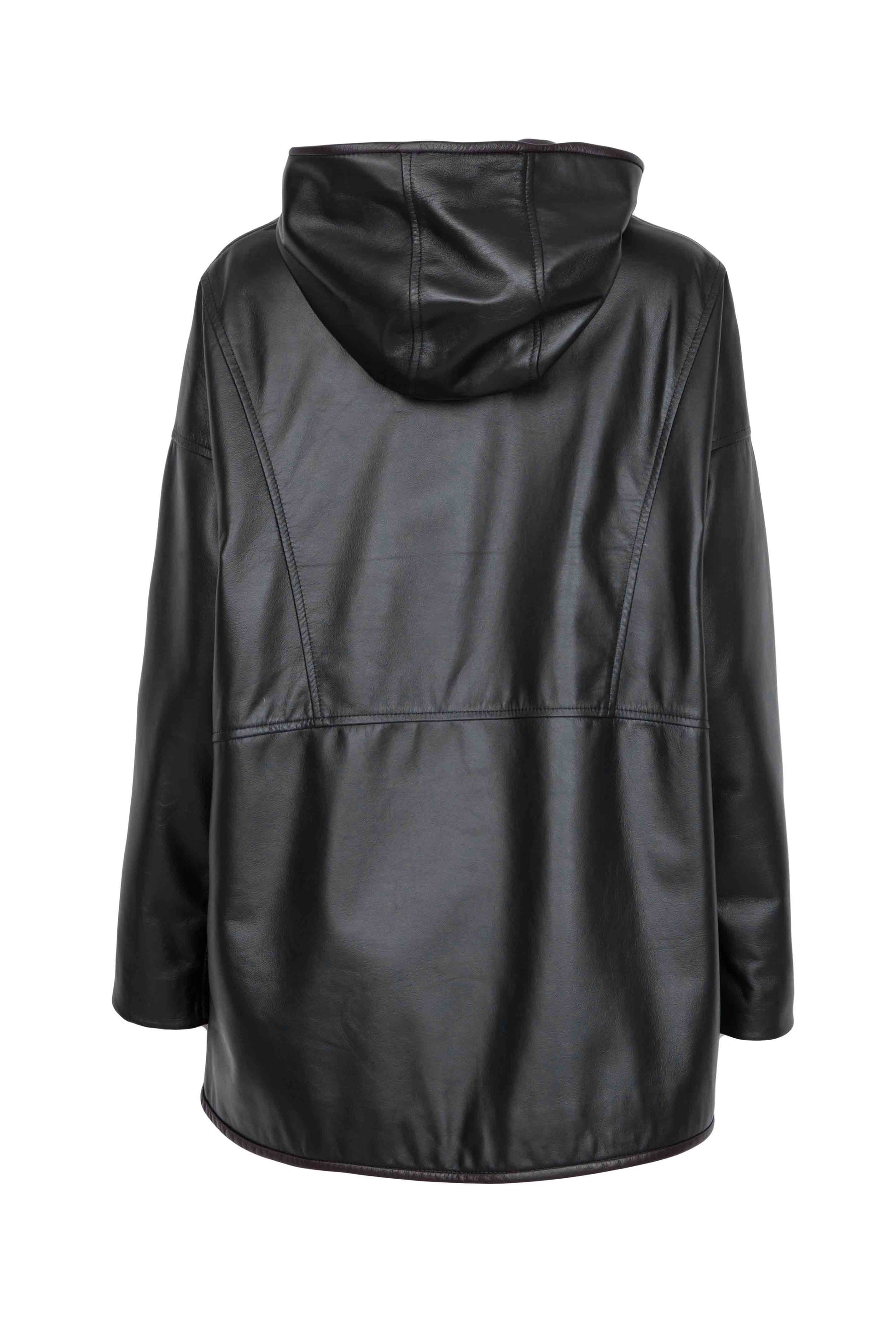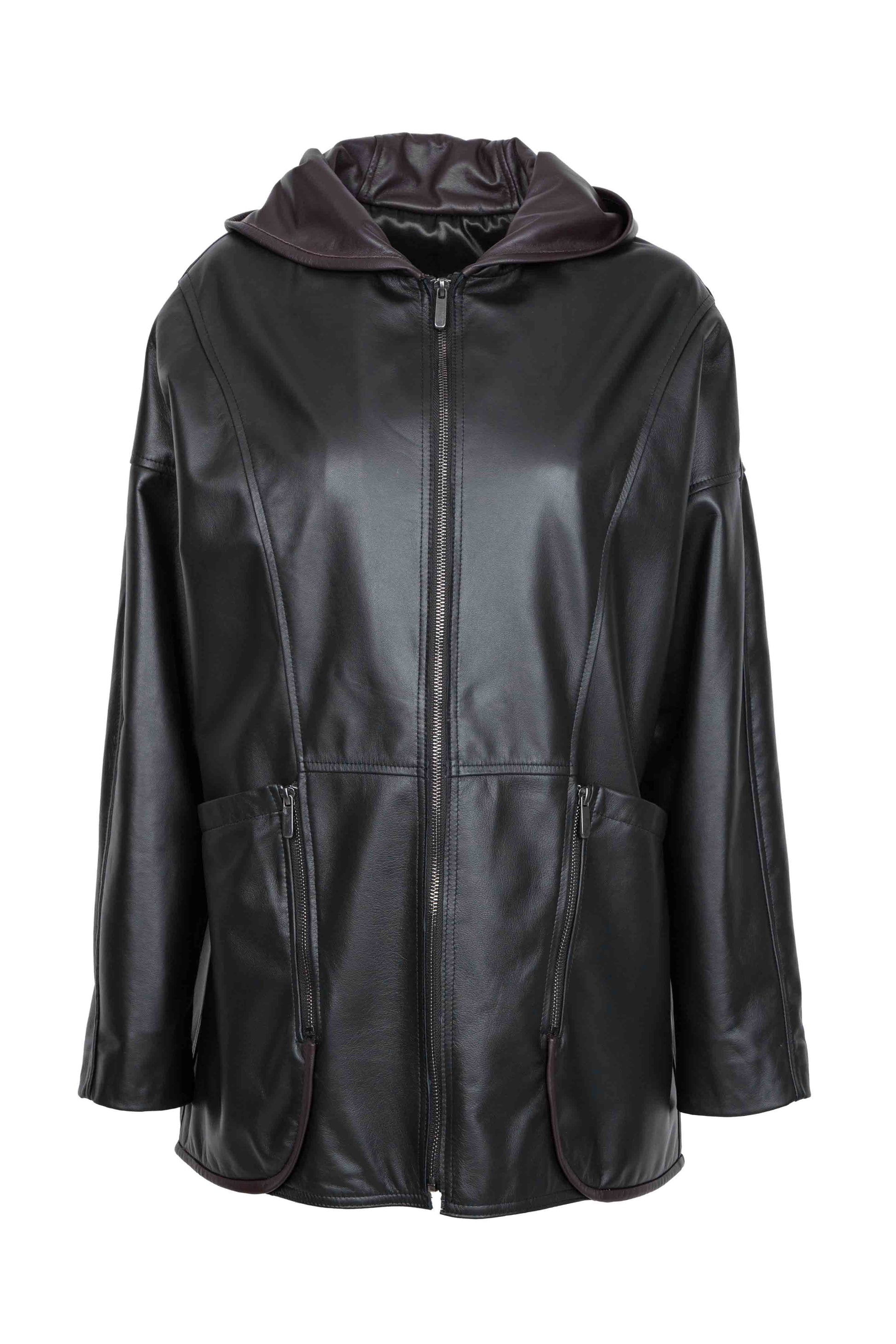 Handmade Soft nappa lamb leather jacket with hood suitable for plus size figures