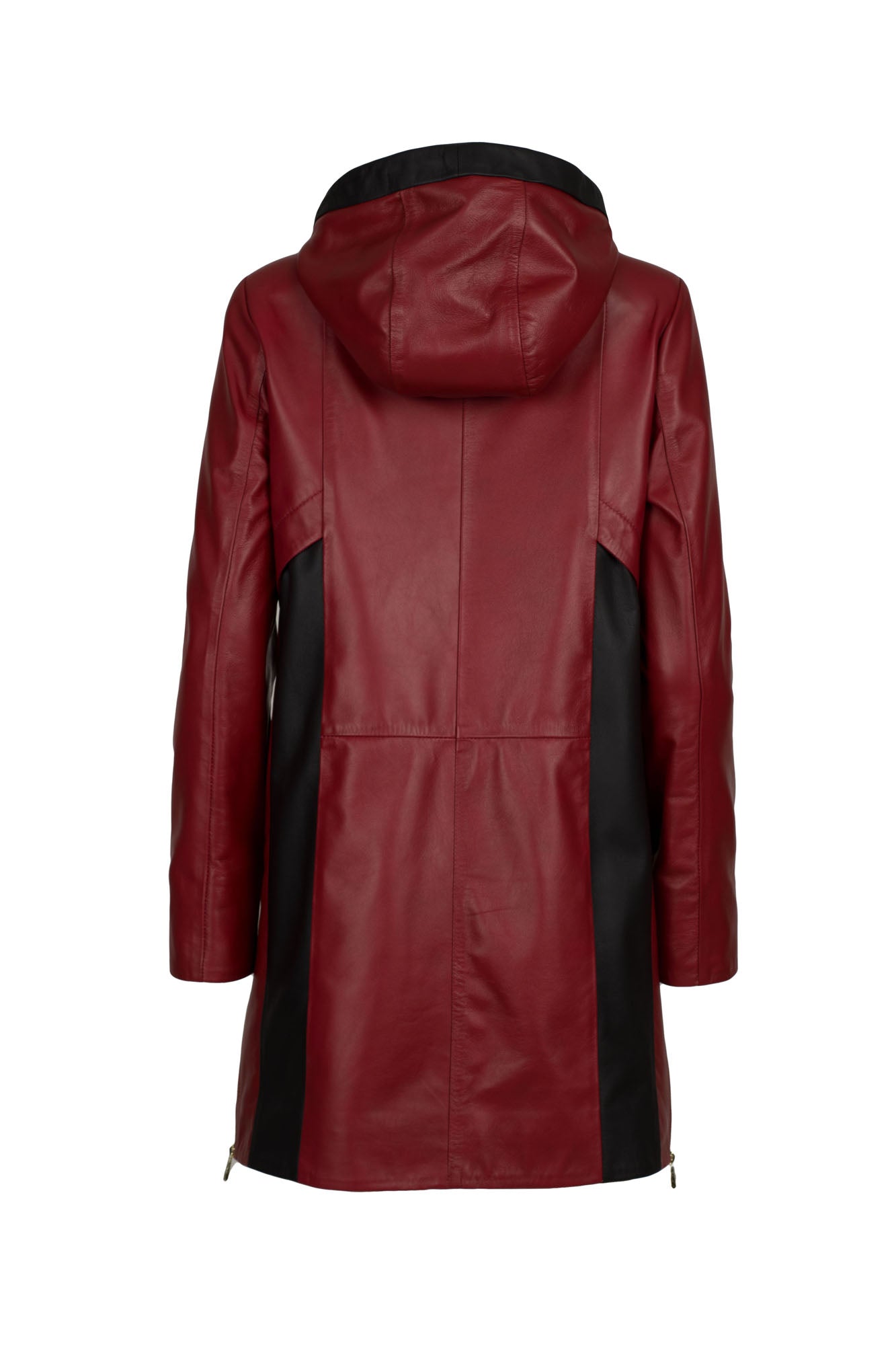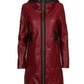 FELICITY - Women's RED -Black LEATHER Trench with hood.