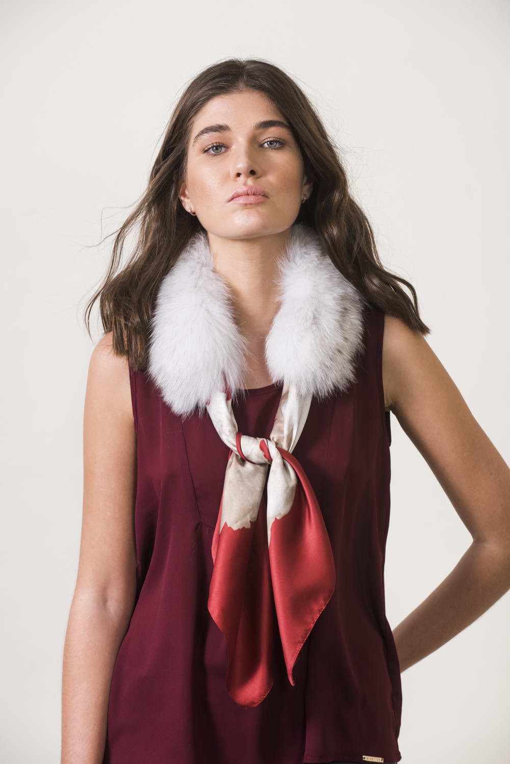 Fox collar contains lining and special slots to place your favorite wrap.
