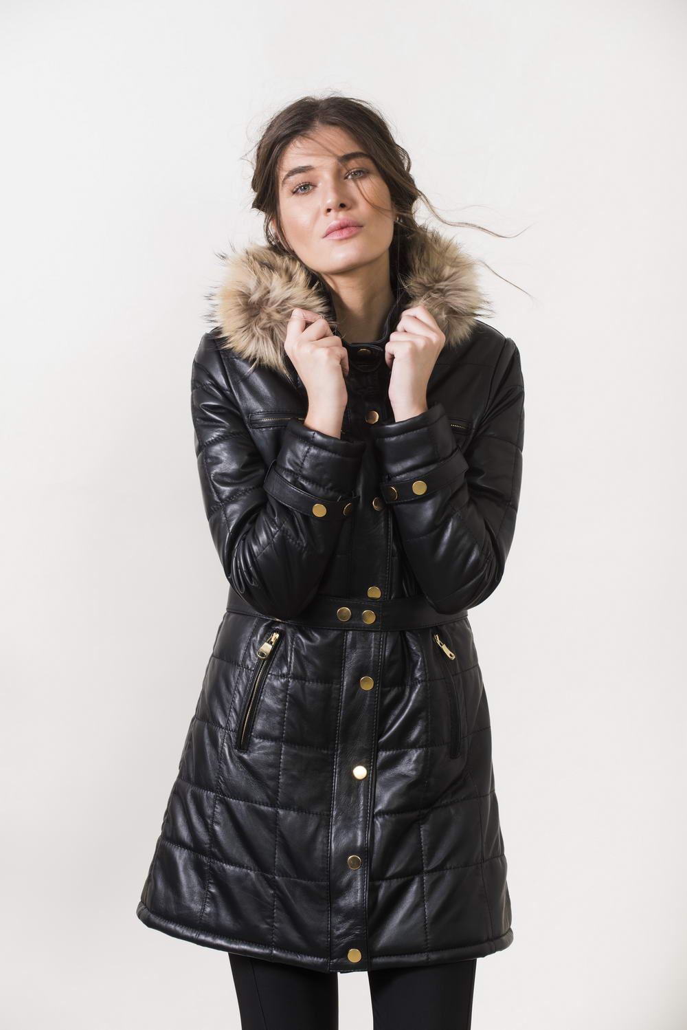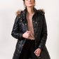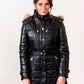 Removable hood with genuine fur trimming.