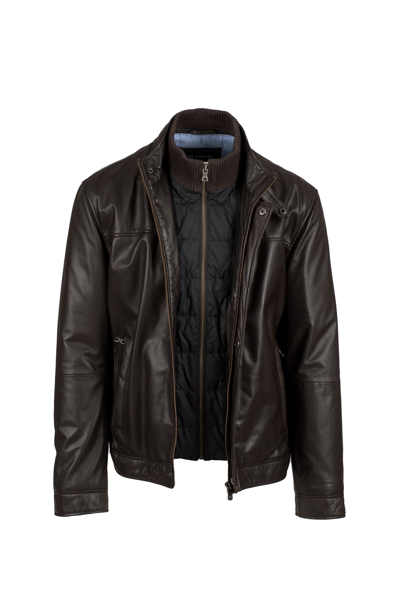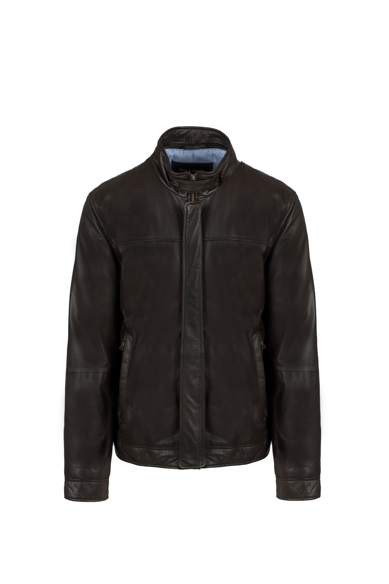 Men's Brown leather jacket by Guy Laroche, crafted from 100% nappa lamb leather.