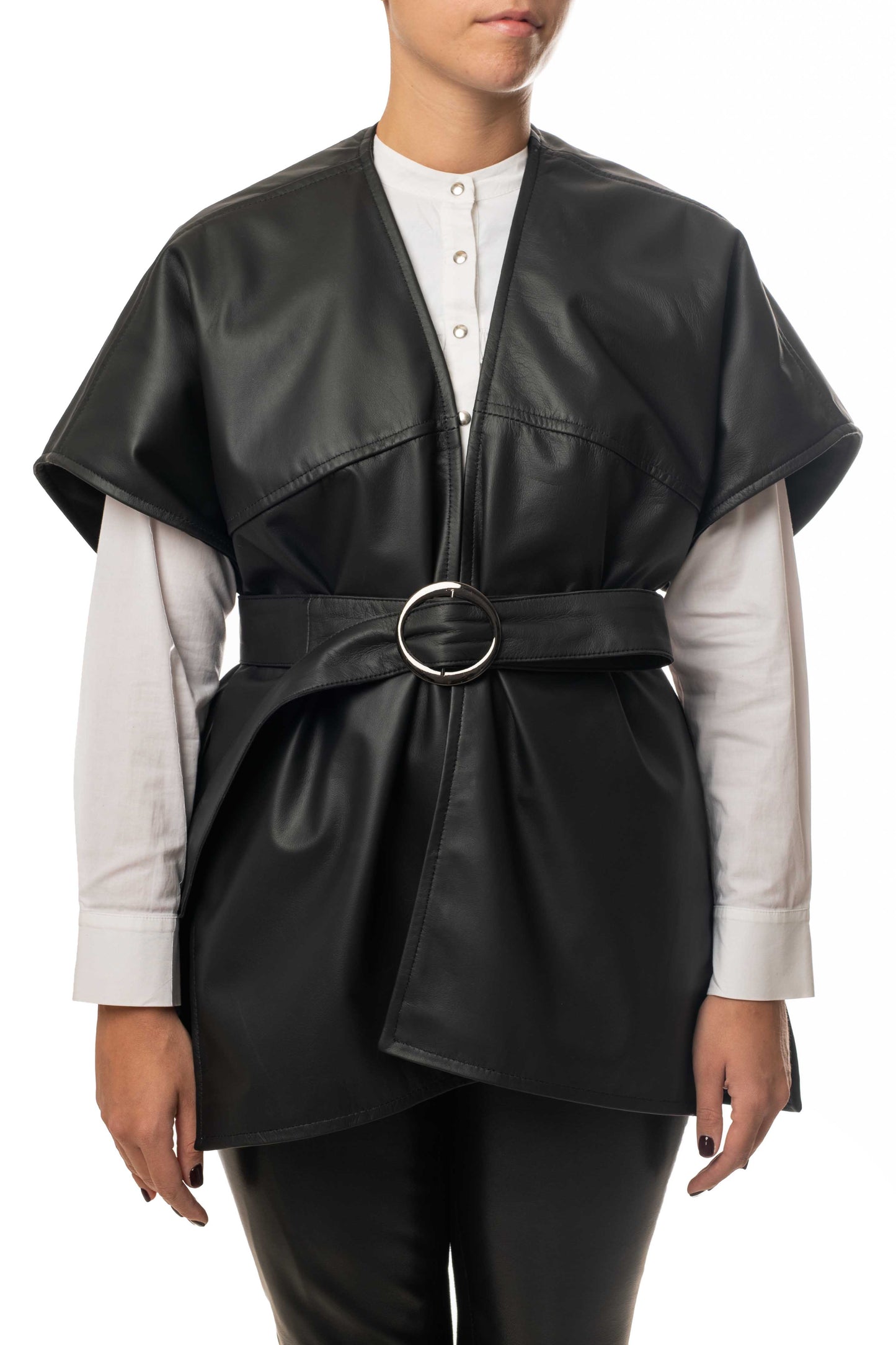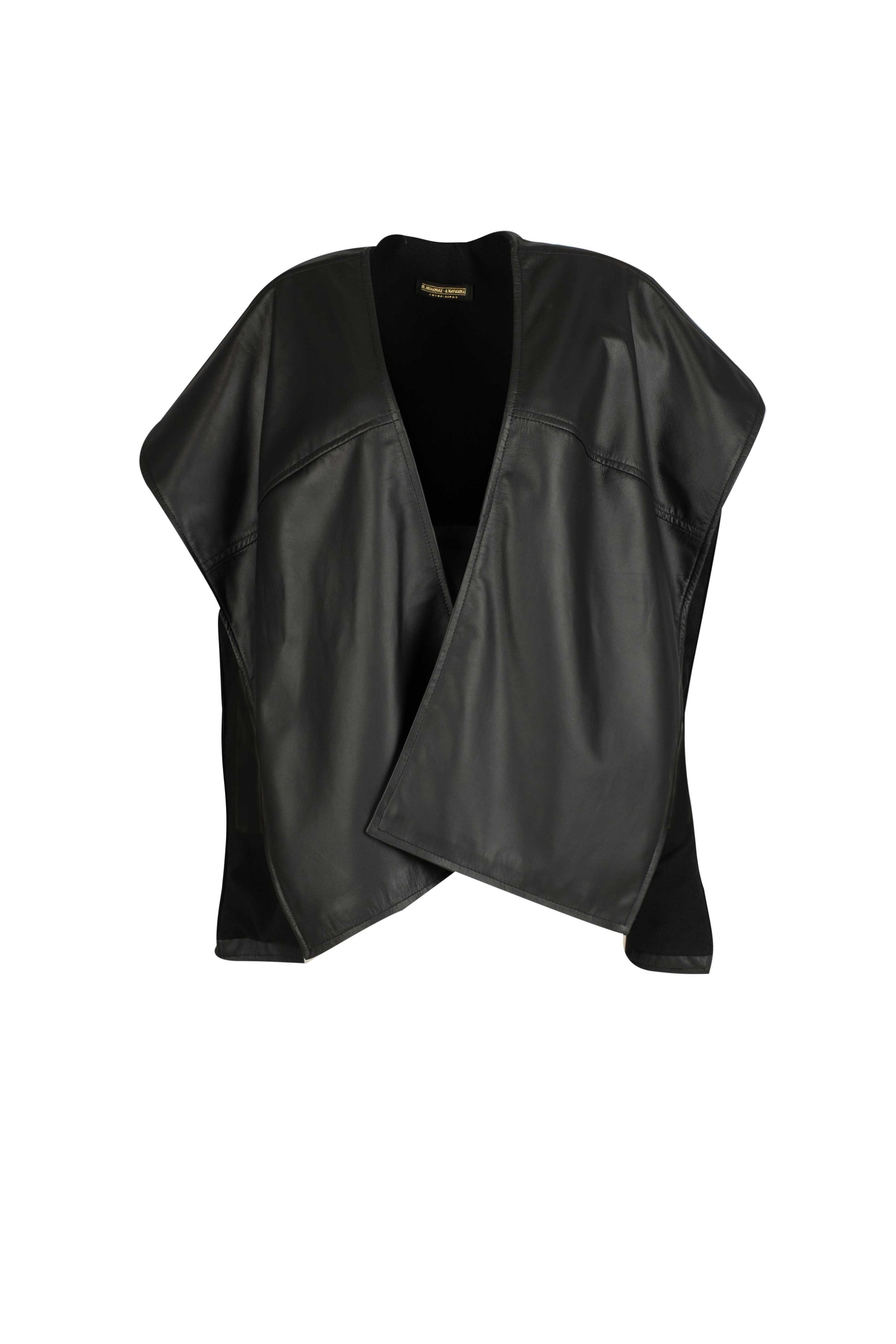 Elevate your style with this timeless black leather cape, crafted from premium, ultra-soft, and durable nappa lamb leather. Meticulously handmade, this versatile piece is designed to complement your everyday wardrobe and transition effortlessly into special occasions.