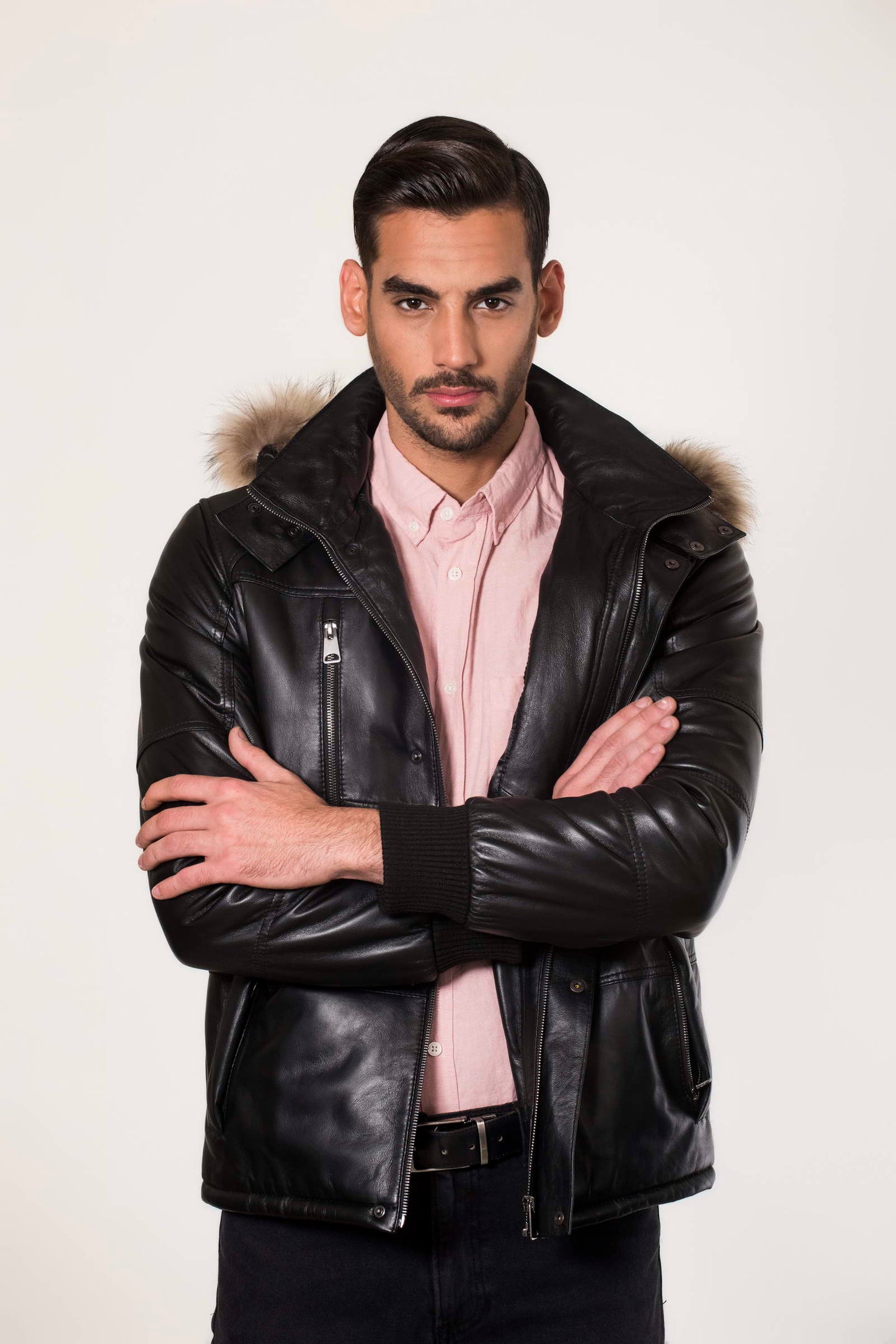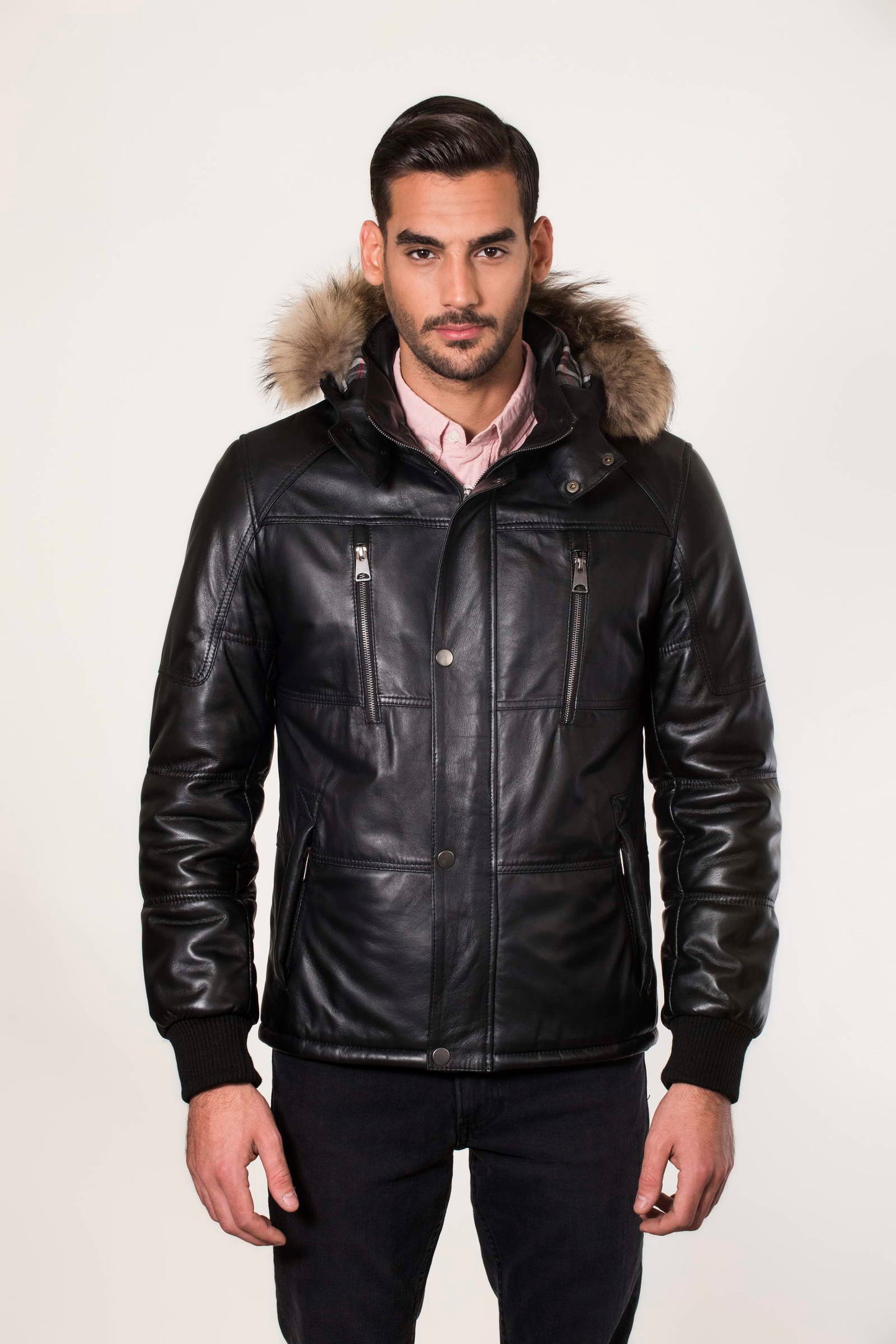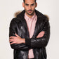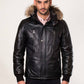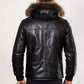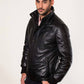 MAX- Men's Black Leather Jacket with removable hood