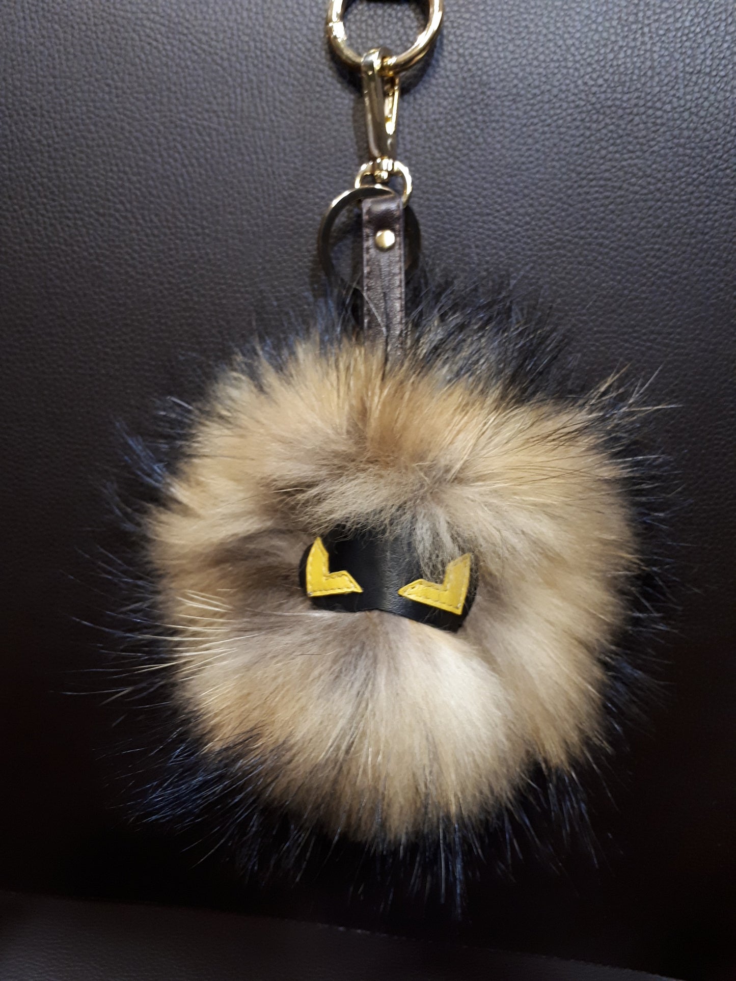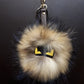Monster face Raccoon FUR Keychain. REAL fur pompom keyring with genuine leather mask and strap.