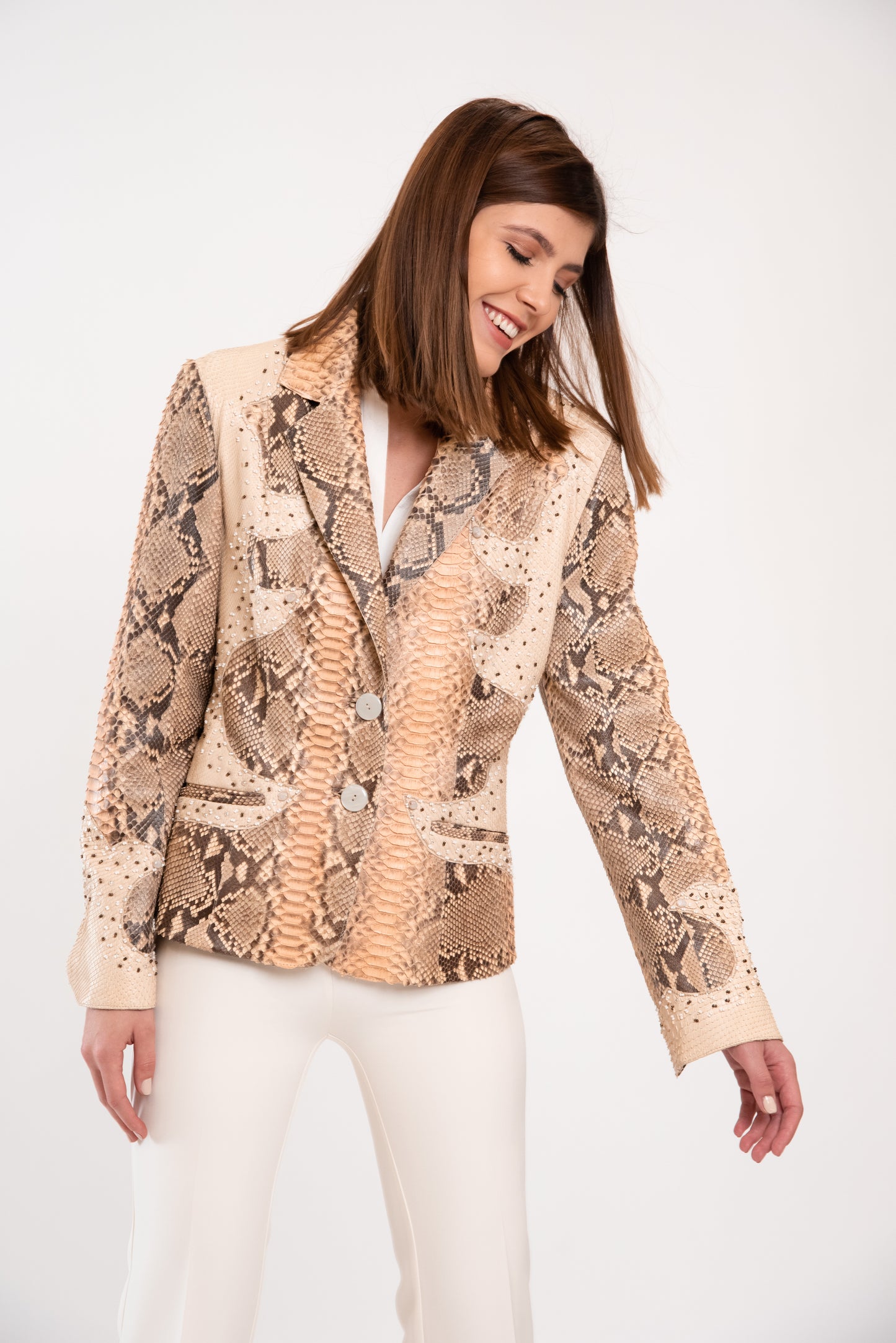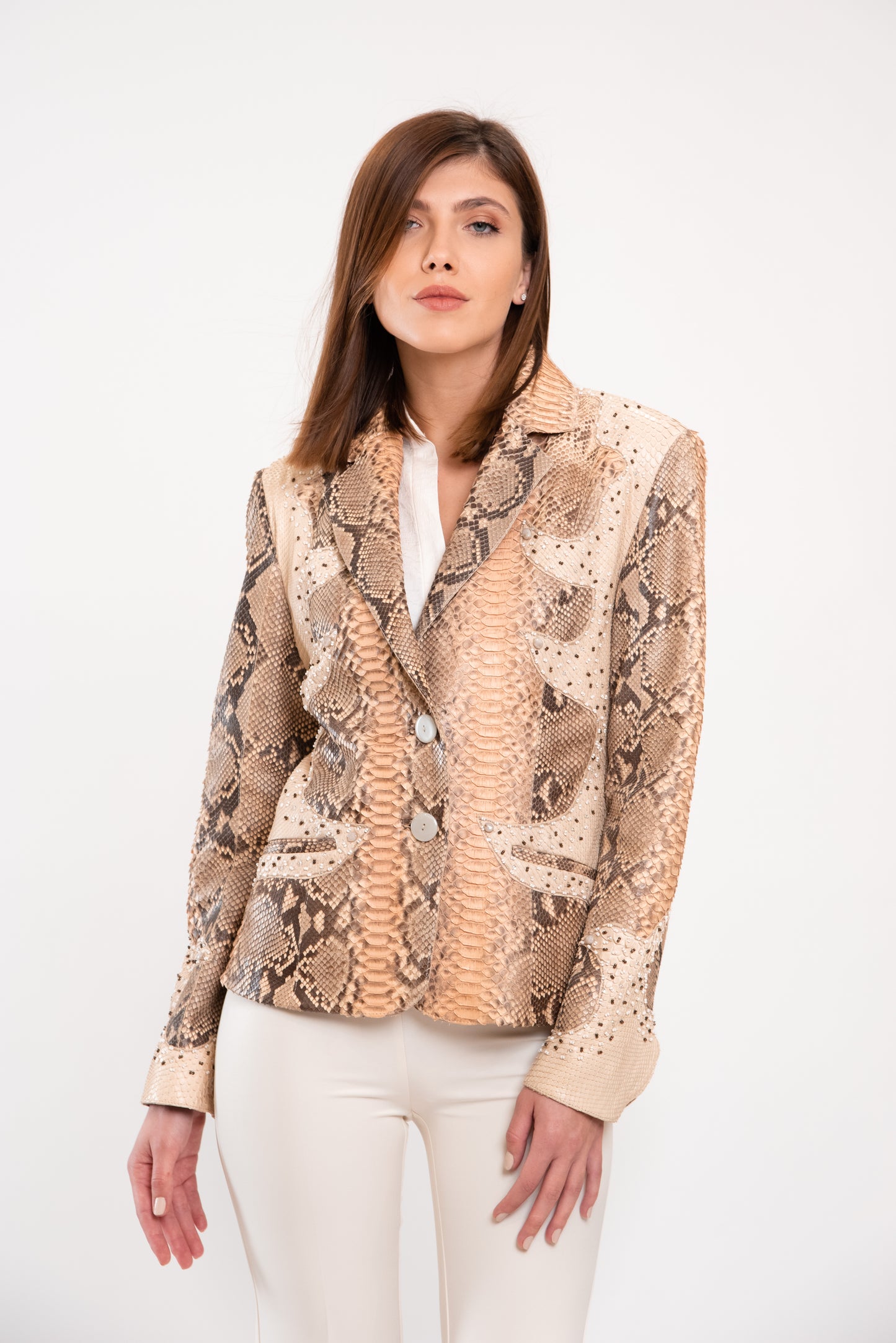 An ultimate statement piece — this luxurious leather blazer is crafted in Italy from 100% genuine python leather, designed to turn heads.