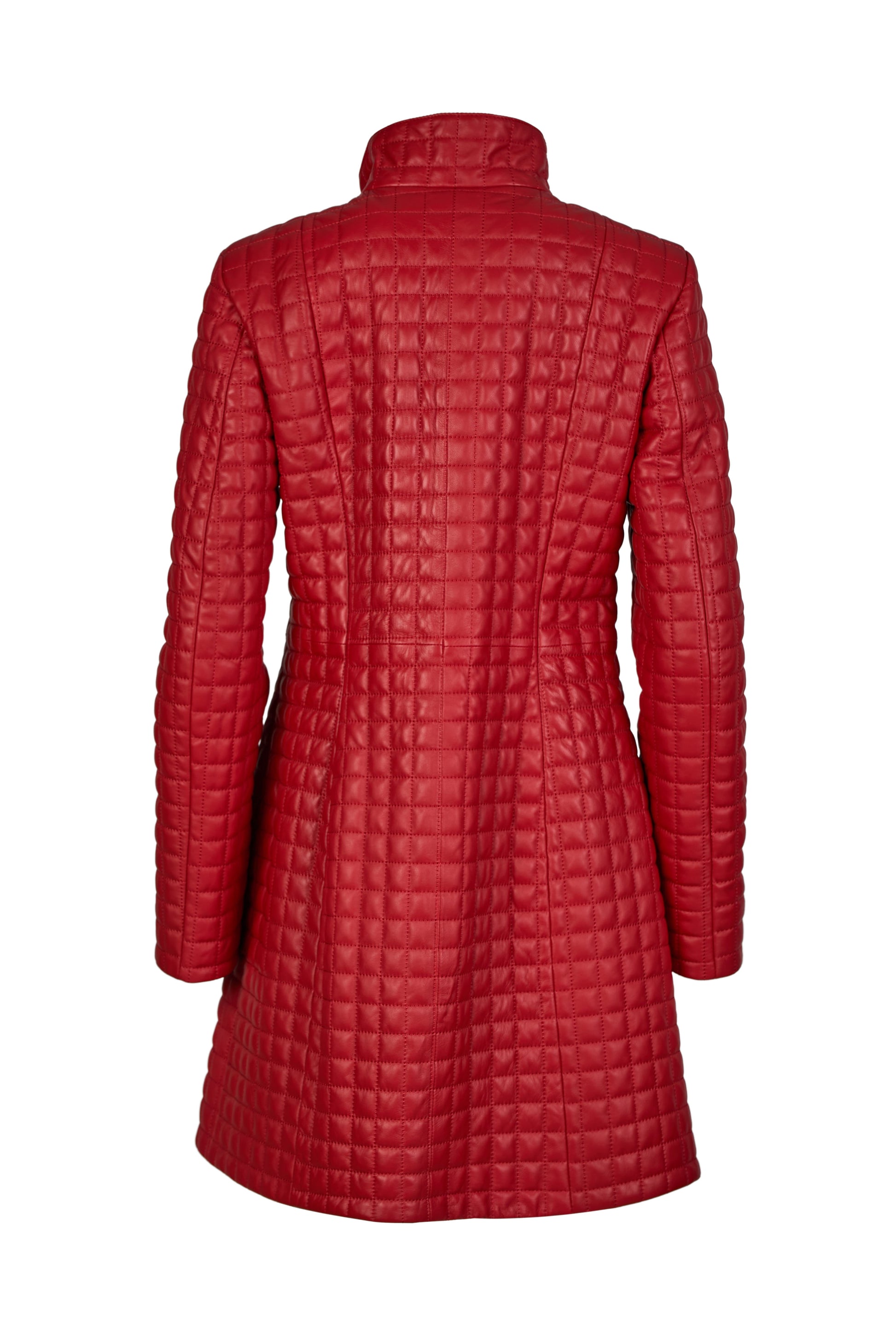 Red Quilted Nappa Leather Coat with Abstract Pattern Lining